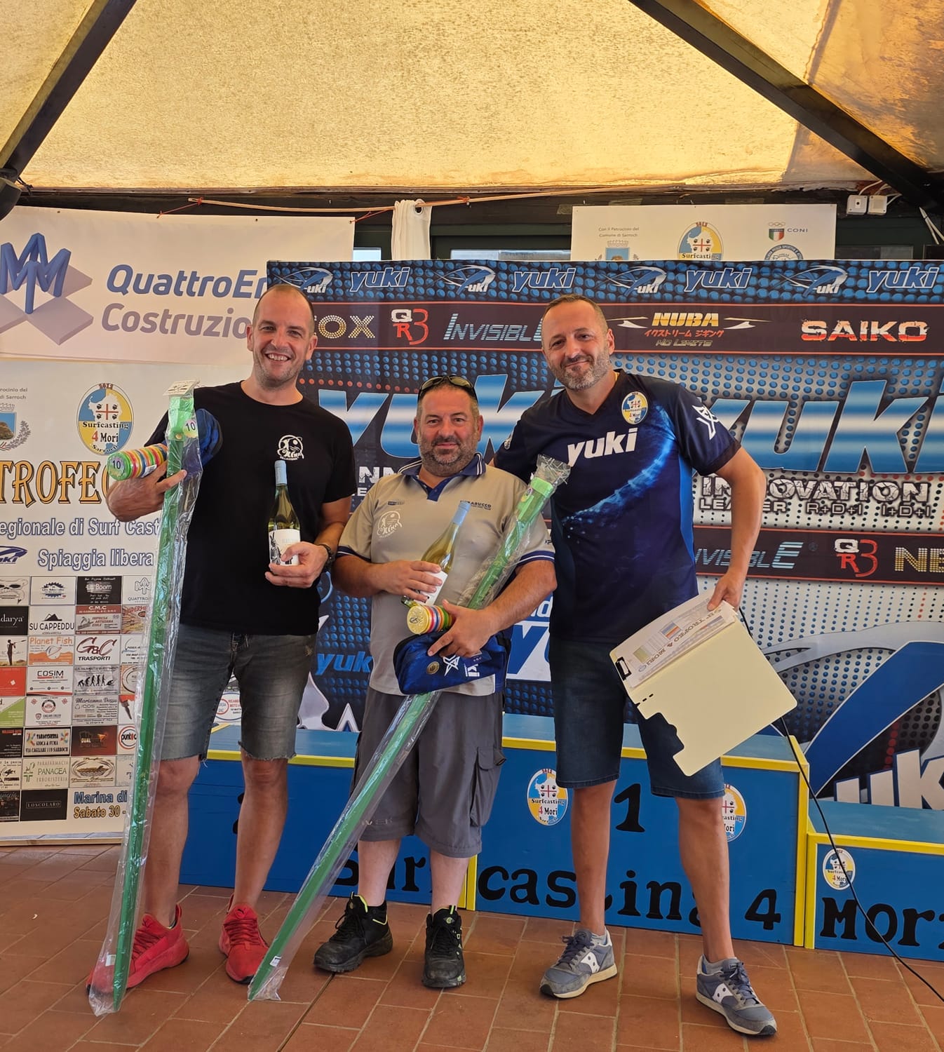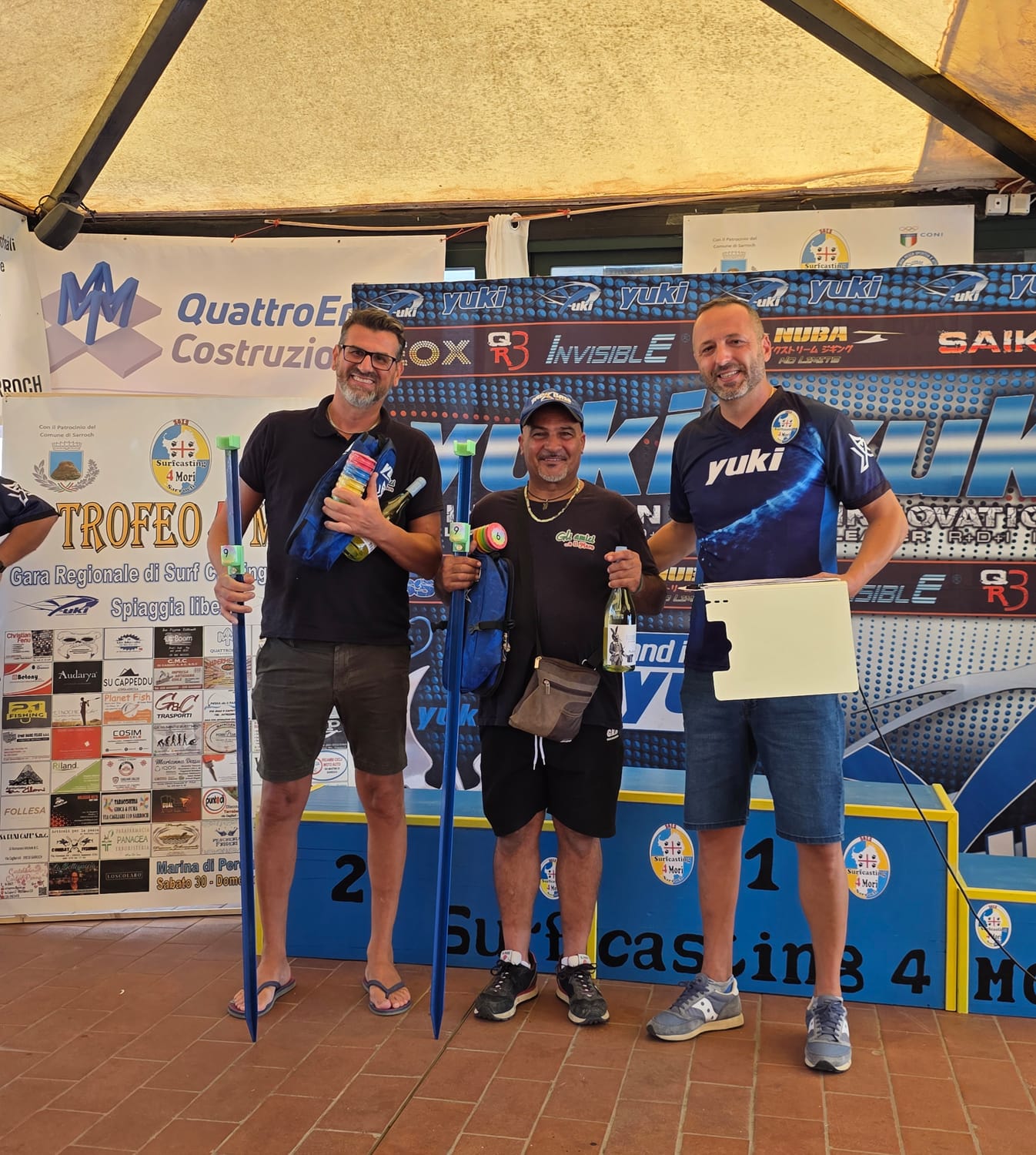 Roberto Accardi e Graziano Mattana (Coxinas) insieme a altre due coppie hanno optato per Torre degli Ulivi, nel comune di Capoterra. Super Roby: “L'esperienza fatta a Torre degli ulivi è stata costruttiva. Affrontare una spiaggia che non conosci è sempre affascinante, e l'aspetto più bello, anche se dispendioso in termini di tempo, è far ruotare più assetti in modo da verificare la presenza di diverse specie marine. In effetti tra sparlotte, saraghi, orate, mormore, occhiate, boghe, la varietà non è mancata! La selezione andava poi fatta per avere una buona percentuale di prede valide, sopra la misura minima di legge. E qui che ho imparato una cosa importante (ve la dico tra poco). Attizzato dall'ottimo ritmo di catture sulle boghe, e dal fatto che erano tutte a cavallo dei cm 15 (la misura minima), ho impegnato quasi 4 ore di gara su questo tipo di pesca con un più che soddisfacente risultato. Peccato che la misura minima in questo trofeo per le boghe era di cm 17! Risultato? Una sola boga valida su... Ciò che ho imparato è che, il regolamento, bisogna sempre leggerlo! Meno male che il mio compagno di box Graziano Mattana è rimasto a mormore e siamo riusciti a entrare in premiazione.”.