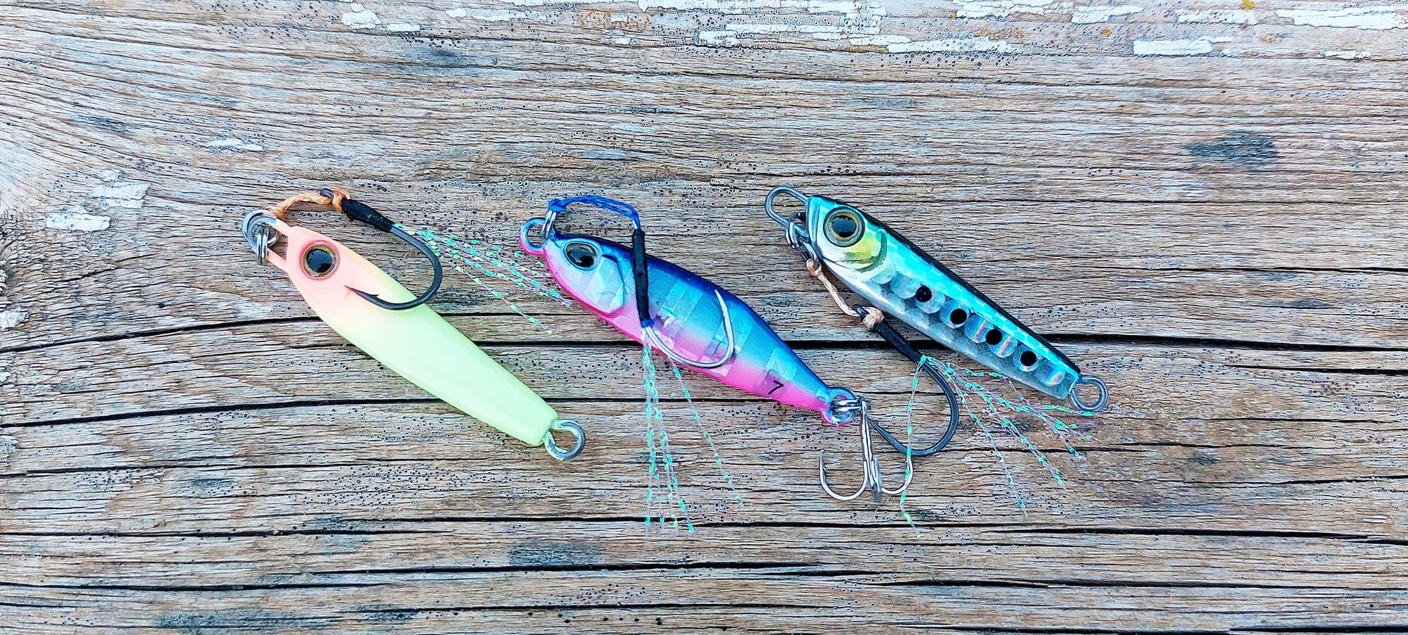 Piccole esche da amia - Si utilizzano esche minute, con peso che quasi mai supera i 15 grammi e non più lunghe di 8, 10 centimetri. Le più interessanti e cioè quelle che in questi mesi hanno dato i migliori risultati sono i jig. Si tratta di piccole imitazioni di pesciolini, in metallo, che se non animate tendono a scendere verso il fondo. Per la pesca alle piccole lecce, i jig si armano con ancorette fissate in coda o assist hook spesso “vestiti” con gonnellini (skirt) colorati e luccicanti. La vestizione dell’esca ha un doppio scopo: aumenta la visibilità dell’inganno, anche a lunga distanza; aumenta le vibrazioni che questo crea in acqua quando è recuperato in velocità, stimolando quindi la linea laterale dell’amia. Lo spinning alle lecce è una tecnica che si pratica dall’alba al tramonto meglio se con forte irraggiamento solare. In queste condizioni le lecce cacciano piccoli muggini, occhiate e più in generale qualsiasi pesce di galla. Frequentano le imboccature delle aree portuali e le lunghe spiagge in prossimità delle foci. Sono astute e sospettose. Ecco quindi che per indurle all’attacco bisogna si animare l’esca, recuperandola a forte velocita con continue jerkate; ma bisogna predisporre un assetto il più possibile invisibile. L’esca si collega, tramite un piccolo moschettone, a almeno un metro di fluorocarbon con una sezione dello 0,30 o anche inferiore. Come mulinello sono ideali quelli intorno ai 3000 con un alto rapporto di recupero. La canna deve essere il classico fioretto, sottile e leggera, per restare in continuo contatto con l’esca e dotata di una bella azione di punta che faciliti la prontezza nella ferrata. Dopo lo strike è preferibile lasciare che la leccia sfoghi gran parte della sua forza lontano da riva e quindi lontano da pericolosi ostacoli sottomarini che potrebbero tagliare la lenza. E comunque una cattura non è mai garantita sino a quando il pesce non è a terra perche l’amia è un formidabile e instancabile combattente.