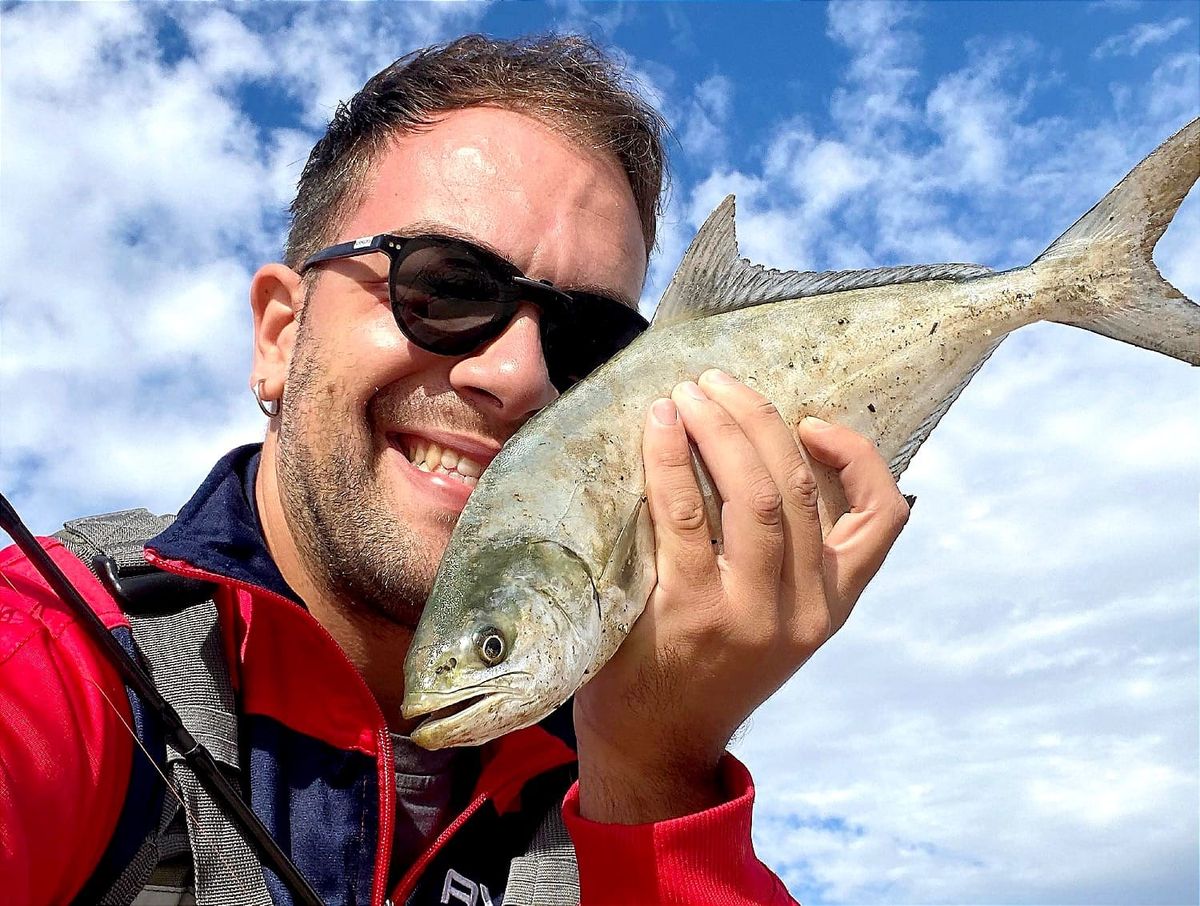 sopra: Michele Anedda con una delle tante piccole lecce amia pescate in questo periodo. Dopo la foto Michele ha liberato la piccola cattura.