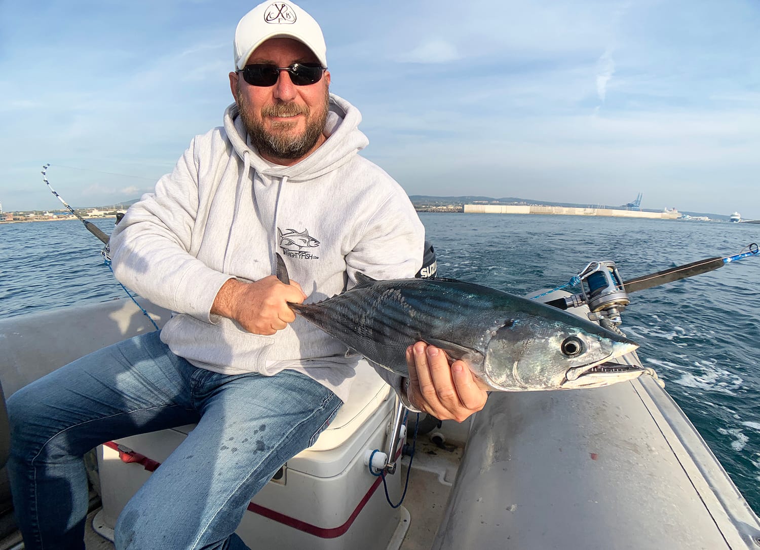 Palamita | Profondità 12-20 metri, fondale roccia misto sabbia, orari alba ed ore centrali |