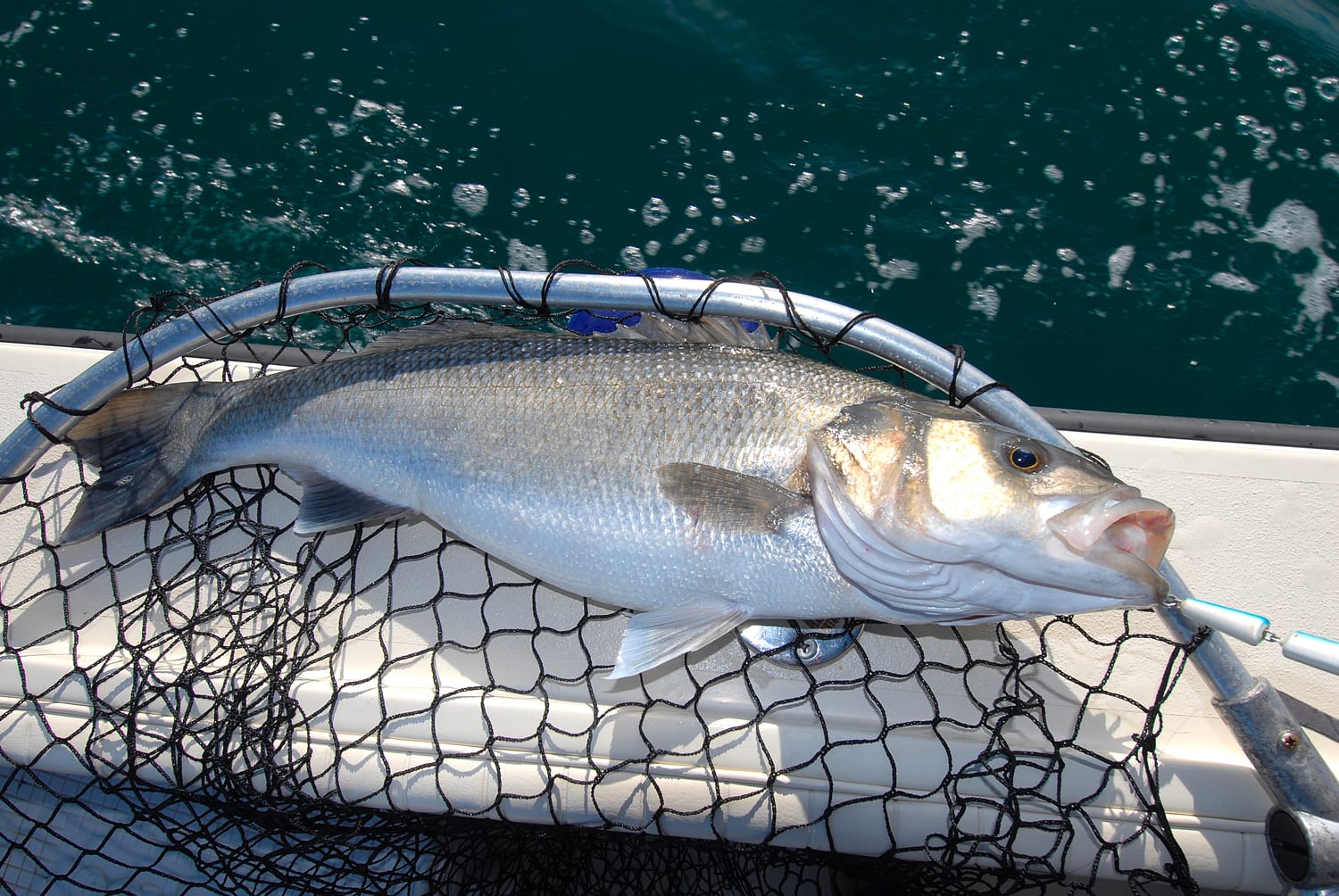 Spigola | Profondità 4-15 metri, fondale posidonia mista roccia, a cavallo con punto d'acqua d'alta o bassa marea |