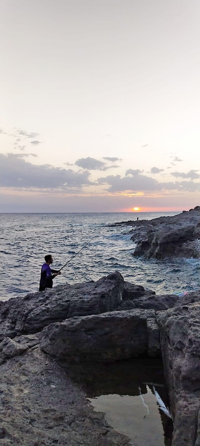La misurazione delle catture è stata fatta utilizzando i righelli forniti dall’organizzazione. Ogni cattura è stata documentata con una foto e un video, postati sul gruppo creato per l’occasione. Alcuni spinner impegnati in scogliera, pochi istanti prima che il sole si immerga nel mare dell’ovest.