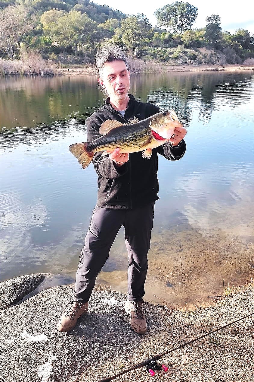 foto in alto: l’autore, sorridente e soddisfatto per la bella cattura: un bel bass pronto a rientrare nel suo ambiente dopo essersi prestato per un foto ricordo.