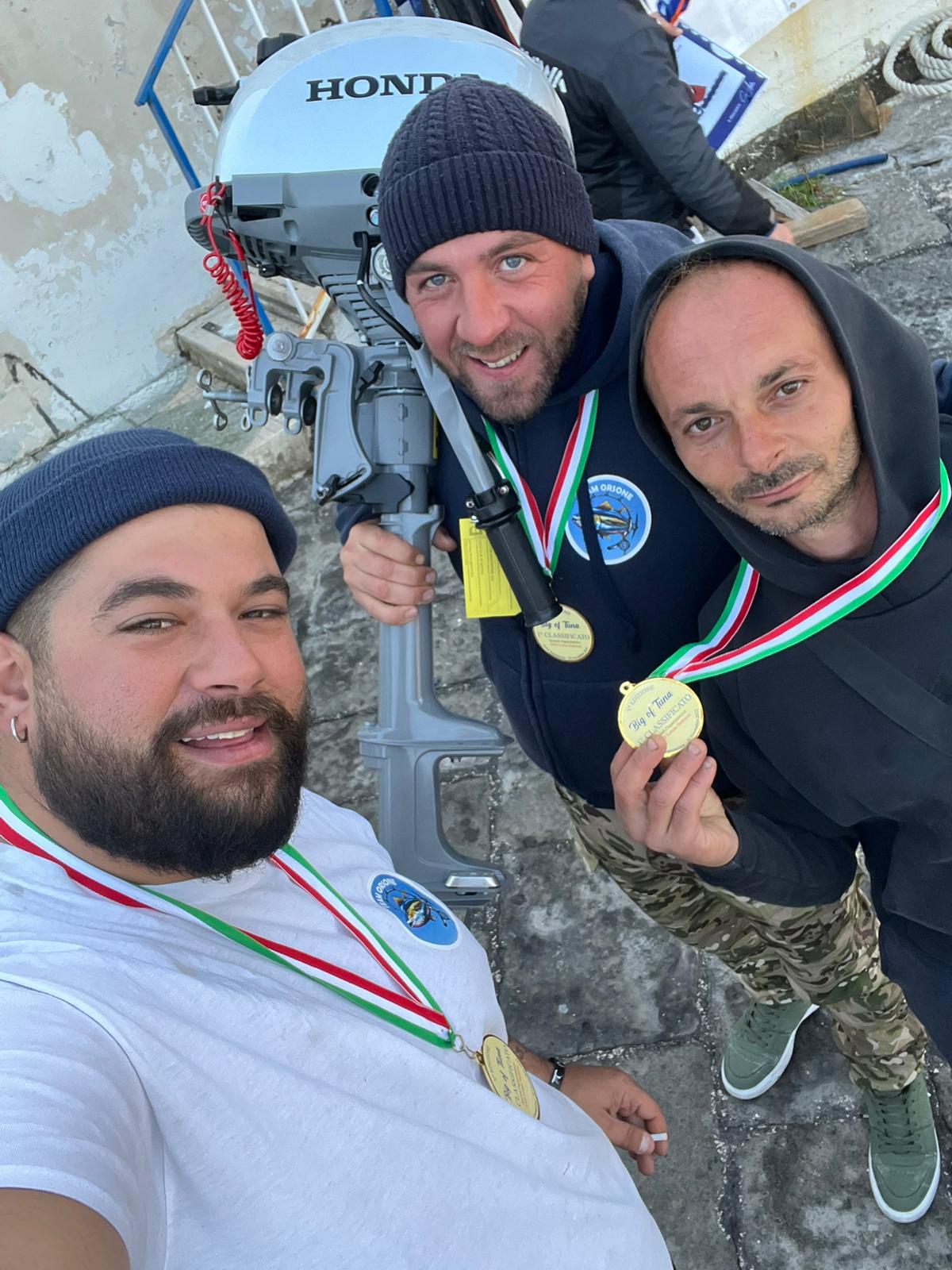"La gara è filata via liscia assistiti da ottime condizioni meteo-marine - dice il patron Ciro Afeltra - ma i fenomeni temporaleschi dei giorni scorsi, probabilmente, sono la causa delle limitate catture dei questa edizione del Big of TuNapoli, rispetto alle precedenti. In conclusione - prosegue Afeltra - abbiamo registrato pochissime prede e annotato la presenza di 3 tonni rossi e un pesce spada e anche uno squalo volpe.". Toni ben più entusiastici sono quelli di Beppe Veniero, team Orsone, che insieme a Vincenzo Amato e Catello Sansone, ha infine, calcato il gradino più alto del podio. "Ci siamo diretti immediatamente verso Torre del Greco e, a 2 miglia circa dalla costa, sulla batimetrica dei m 100, abbiamo iniziato a pasturare, ancorati col Minn-Kota. Non ci siamo scoraggiati - prosegue Amato - se dopo due ore non avevamo visto un pesce e nemmeno un segnale. Alla fine il tonno è arrivato! Forse in ritardo, ma io lo aspettavo. Tutto è andato bene, misurazione (al centro dell'asta, nel verde) e ripresa video, e grazie alla mia Reverse Italcanna siamo arrivati primi, meritandoci il bellissimo e super utile fuoribordo 2,3 hp messo in palio da Honda Marine.