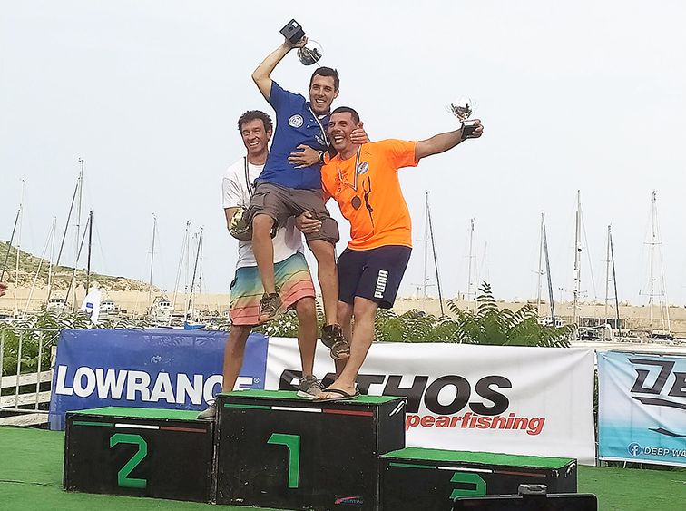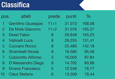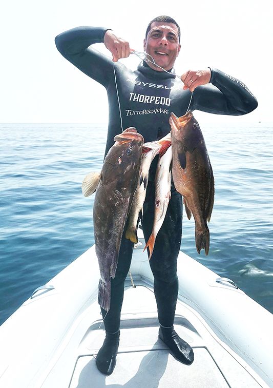 Come hai impostato la gara? “Beh, ho scartato subito il basso e medio fondo, puntando ai 30 metri e fino ai 48. La perlustrazione del campo non lasciava spazio a scelte... troppe cernie. Così sono partito subito nella posta registrata “Tuffa Fabio” dove ho trovato dentici e cernie. I primi però erano infastiditi dalla corrente e così ho virato verso le cernie, distanti 20 metri circa. Qui mi aspettava una bianca che però mi ha fatto tribolare non dando spazio allo sparo. Così ho dovuto fare un altro tuffo col fucile sul fondo a guardia della cernia. Al mio ritorno l’ho sparata in testa. Seguo con una dorata, un dentice e una corvina. Chiudo la giornata con un terzo posto. De Mola primo e Gentilini secondo. La manche seguente mi fiondo in una posta di dentici e cernie. Non trovo i primi e mi rifaccio con le seconde: prima una dorata e poi una bianca. Metto a pagliolo ancora una mustela e un sarago, ma sbaglio un importantissimo Diplodus. 19 tuffi. Alla fine, mi confermo secondo di manche, mentre De Mola e Gentilini, pur con un calo di prestazioni, rimangono entrambi sul podio. Gentilini vince e De Mola scala al secondo posto. Io mi tengo stretto il mio bronzo, per me, quasi un oro.