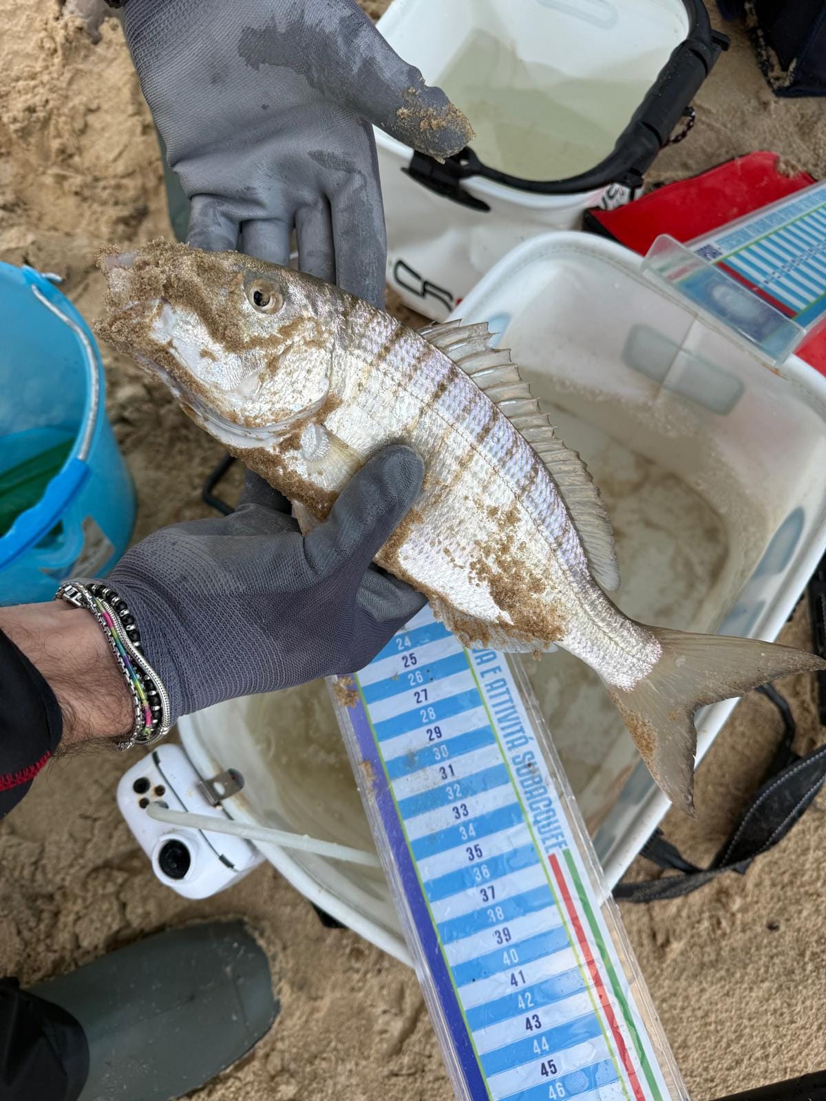 Nonostante l’avvio complicato, le prime catture non si sono fatte attendere: immediatamente dopo il fischio d’inizio è arrivato un notevole cefalo da 54 centimetri, che ha dato slancio alla competizione e acceso l’entusiasmo del settore. Anche alcune belle mormore hanno fatto la loro comparsa nelle fasi iniziali, confermando una timida attività del pesce nelle prime battute.