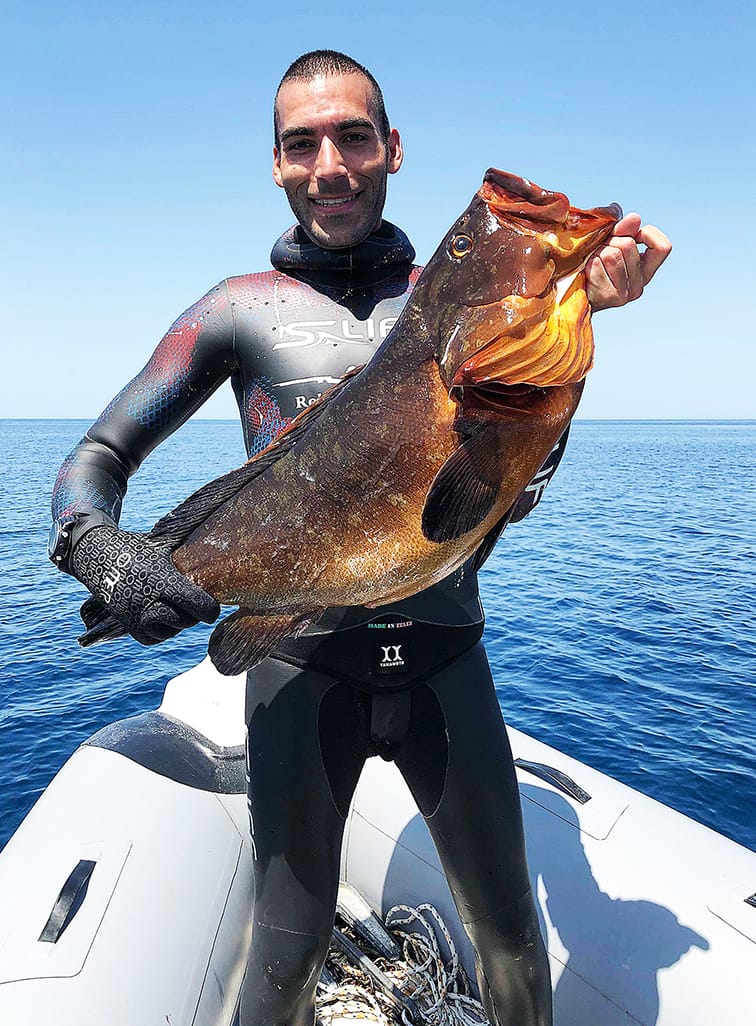 Una preda che ricordi volentieri? Sempre a Capo Marrargiu… una giornata in ma-re senza vedere una pinna dignitosa. Un po’ scoraggiato, seguo il consiglio di mio padre: fai un tuffo sulla secca! Mi avvicino e seppur privo di strumenti non ho difficoltà a trovare lo spot. Mi immergo e vedo un branco di dentici, tutti enormi. Ma non si lasciano avvicinare. Allora risalgo con l’intenzione di riprovarci. Mi avvicino col gommone e mi rituffo. Plano su una tettoia e mi nascondo, almeno un po’, sotto. Il più grosso, il capo branco, si stacca dal gruppo e si avvicina in seguito ai richiami gutturali. Mantengo la calma, per quanto possibile, col fucile puntato, certo che sarebbe arrivato a tiro. Quando giunge a un metro e mezzo sparo. Fulminato con un tiro preciso in mezzo agli occhi. Quasi 10 chili, il doppio per me, perché preso in compagnia di mio padre. Molto orgoglioso. Incontenibile. È il mio record.