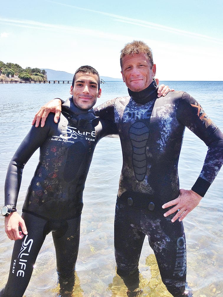 Quindi? Di lì a poco il mio primo fucile e un altro corso, di secondo livello, sempre a Ghilarza, sempre con Mattana. E poi? Poi sono uscito con i compagni di corso, tutti più grandi di me, tutti pescatori. Tra i tanti Ivan Arca, compaesano, posso dire che mi ha svezzato. Poi, a Paulilatino l’incontro con Umberto Pelizzari.