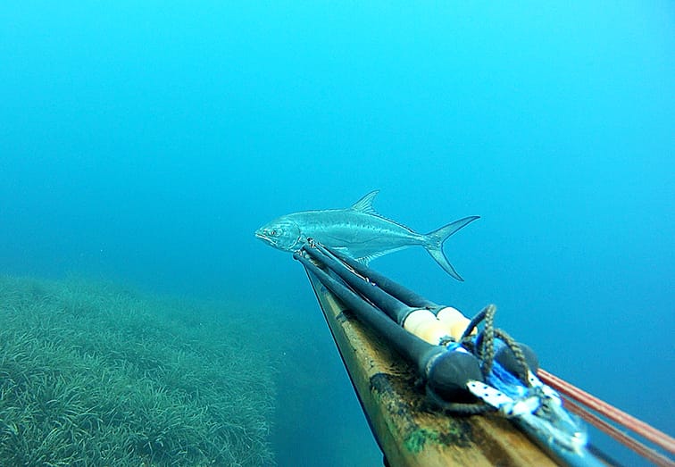 Ce la puoi descrivere? È una bella secca con 3 cappelli, 3 panettoni calcarei, i cui sommi raggiungono gli 8-10 metri per cadere su un fondo sabbioso a circa 35 metri di profondità. Sono coperti di corallo e posidonia, con molti spacchi e accarezzati da una correntina niente male. I pesci sono i soliti: mostelle, saraghi, corvine e cernie, principalmente, che sparavo all’aspetto.