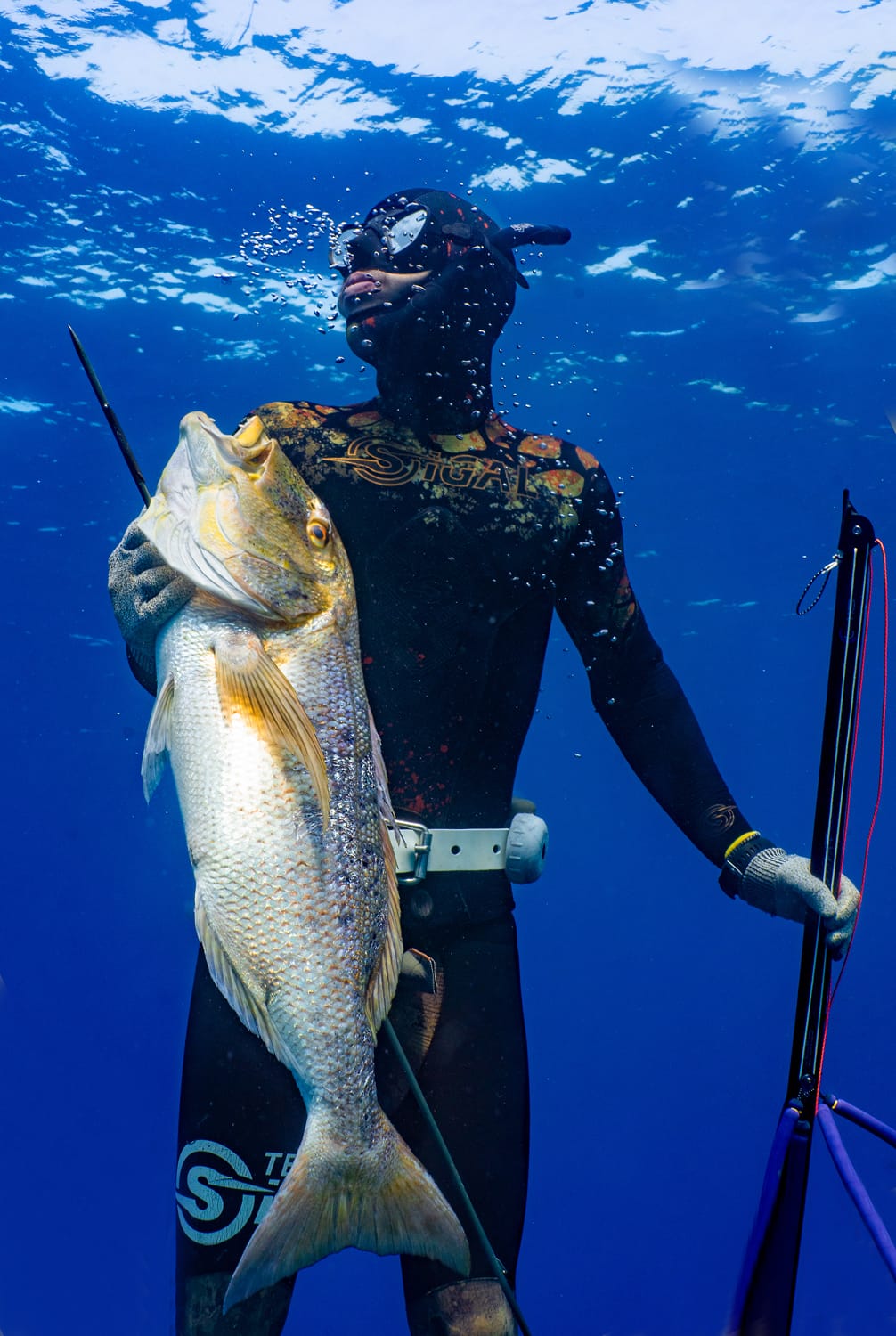 La prima soddisfazione? A Cecina, nel 2018. Partecipavo al Campionato italiano a squadre con un team “tutto in famiglia”, puoi capire, vero? Renzo, Nilo e io. Scovai un sarago in un anfratto che alla mia vista scappava attraverso un’apertura che si apriva dalla parte opposta della roccia. Insomma non mi dava il tempo di sparare. Dopo un po’ di girotondo e svariati tuffi a 22 metri, trovai la soluzione. Mi feci dare un altro fucile, lo piazzai in un’apertura della roccia e lo aspettai all’altra uscita. Così lo fregai! Con tanta soddisfazione e tanti complimenti da parte dei miei compagni. Per la cronaca, arrivammo secondi.