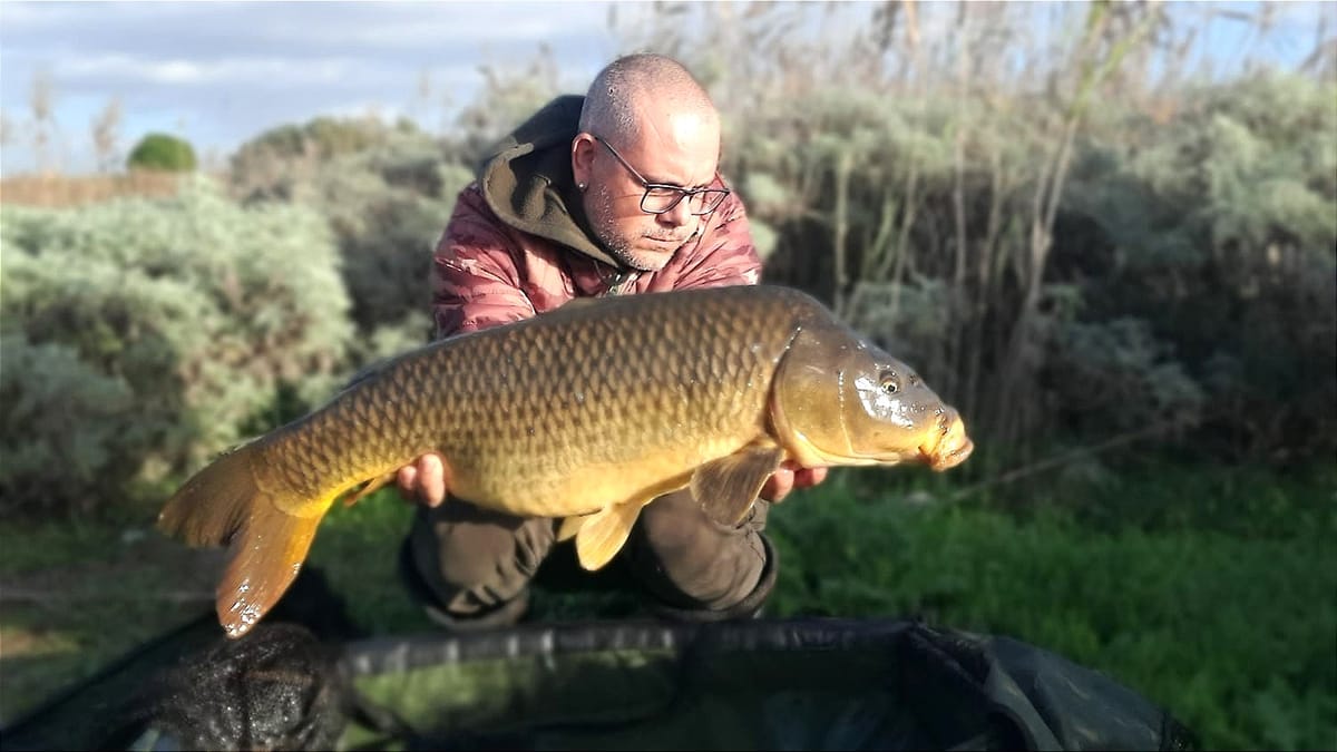 foto sopra: Alessio Marongiu con una bellissima carpa regina pescata in una sessione invernale.