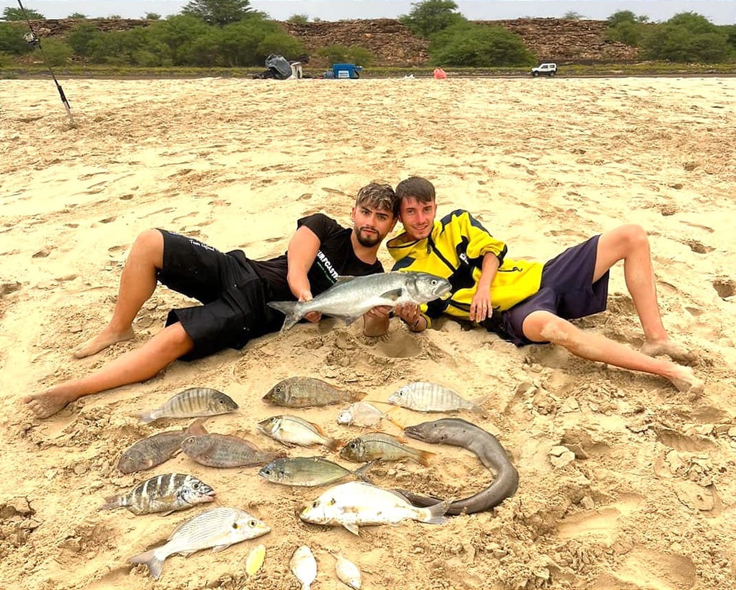Tutto inizia due anni fa, quando Nicola Sanna e Lorenzo Pintus vincono il Master Fisher ’23, gara di surfcasting a campo libero organizzata dal Coxinas di Villacidro. Quella notte Nicola e Lorenzo sbaragliano la concorrenza e vincono, tra i tantissimi premi, anche una settimana a Capo Verde, il sogno di tutti gli amanti della pesca dalla spiaggia. Capo Verde è un arcipelago a circa 400 chilometri a ovest delle coste senegalesi. L’isola di Boa Vista, meta dei due fortunati pescatori, dista una cinquantina di chilometri a nord est rispetto a Santiago.