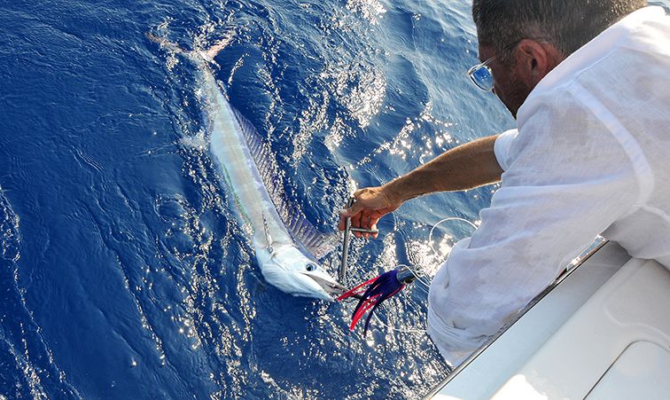 L’edizione 2023 dell’Offshore Classic, gara di traina d’altura, ha proposto infatti un nuovo regolamento con la limitazione alle 20 lb, costringendo gli equipaggi all’uso di una attrezzatura adeguata con settaggi ancora sconosciuti, molto più sportivi e, appunto, forse più catturanti. Oppure è solo una fortunata coincidenza. In verità, il festival dell’aguglia che si è sviluppato nelle due giornate, deriva anche dal regolamento, volutamente inclinato a favore del rostrato. L’unica specie che nel periodo avrebbe potuto fare concorrenza al belone è l’alalunga, abitualmente presente in acque più profonde, ma poco valorizzata dal punteggio attribuitogli.