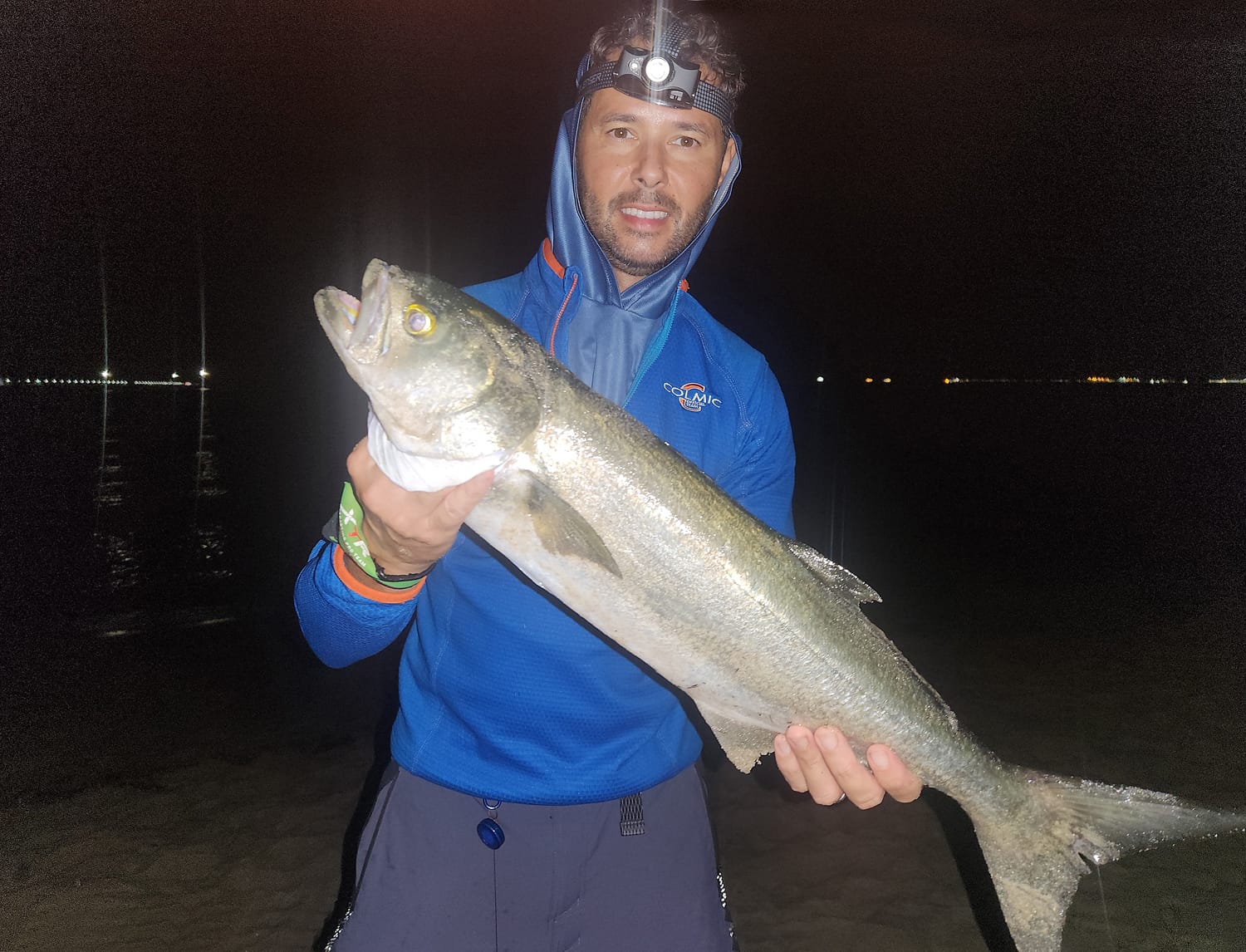 Nella notte tra sabato 4 e domenica 5 ottobre sono andato a pesca nella spiaggia di Feraxi. Il mio obiettivo erano i serra. E siccome, per riuscire ad avere qualche attacco bisogna lanciare lontano, ho usato dei mulinelli con lenza dello 0,20, finale dello 0,50 e il classico trancio di muggine su cavetto d’acciaio. Ho subito avuto un bell’attacco ma il pesce non c’è rimasto. Poi finalmente è arrivata questa bella cattura, un serra di ben 4,1 chili. Ciao a tutti da Manolo Soddu.
