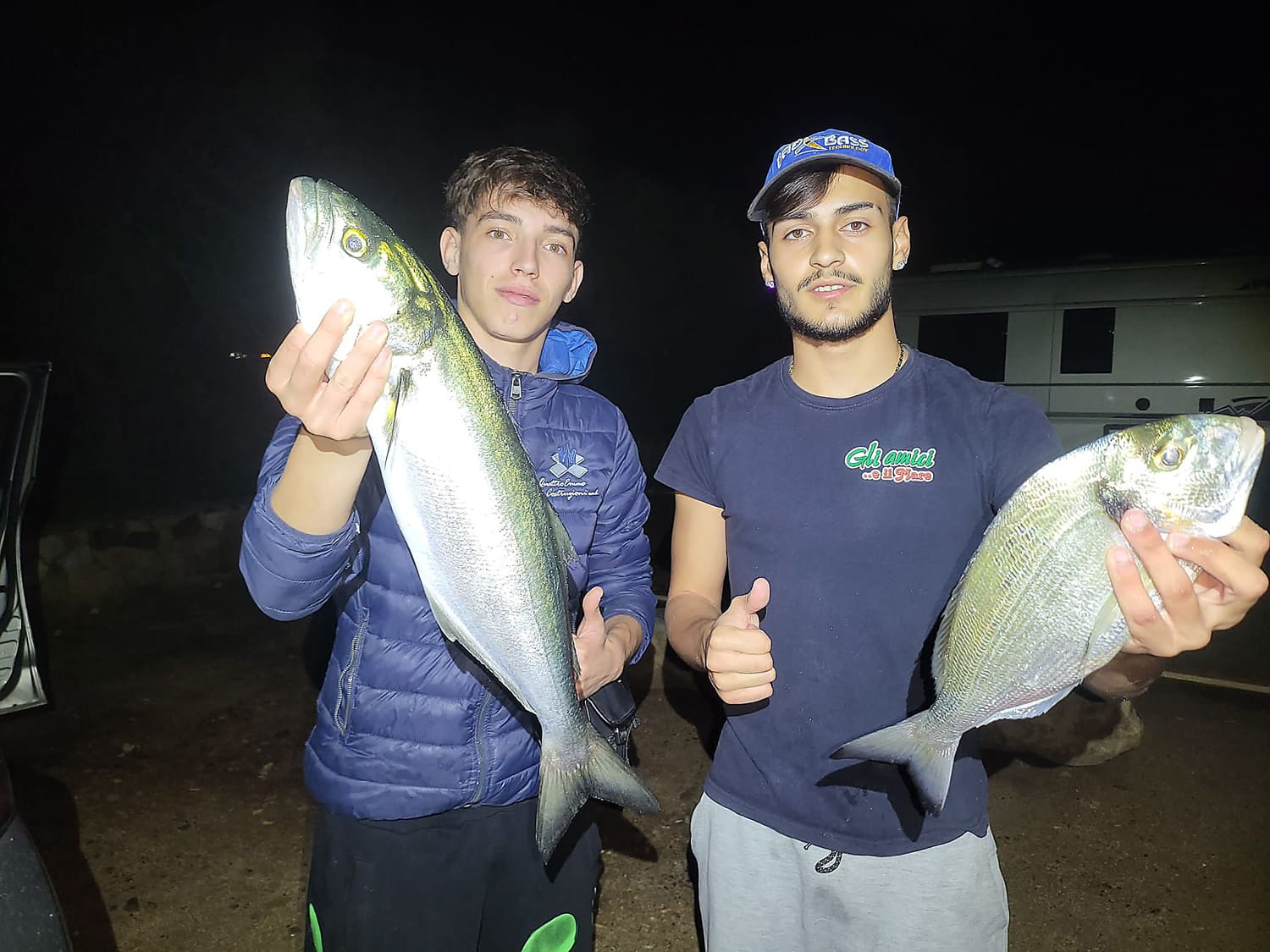 Dalla Sicilia, precisamente da Porto Palo di Menfi, in provincia di Agrigento, nella costa sud occidentale dell'isola, arriva per mano di Antonio Rosato, questa magnifica cernia bruna di 10 chili, catturata in verticale su un fondale roccioso e vulcanico a circa 60 metri di profondità, con un Xipi Evo da g 190 di JLC. ComplimentiFine settembre. Dopo giorni di maestrale, nel pomeriggio entra lo scirocco che per lo spot in cui mi trovavo non era indicato. È risaputo infatti che nella spiaggia di Giorgino, a Cagliari, si è sempre pescato con “l’amico” maestrale. Infatti, qui con vento alle spalle, si sono sempre fatte belle pescate di mormore. Ed è per questo che mi ero portato un bel po’ di scatole di arenicola che non vedevo l'ora di buttare in mare. Con l'arrivo del buio sono arrivati anche i granchietti che puntualmente tranciavano i miei braccioli ad ogni lancio. Dopo aver usato diverse scatole di arenicola e aver perso decine di ami, ho deciso di dedicare le tre canne al pesce serra. Avevo già pronte alcune “cartucce” di muggine surgelato. Dopo circa 2 ore, intorno a mezzanotte, ho notato una mangiata molto timida, seguita da una seconda quasi impercettibile. Ho preso la canna in mano e alla terza mangiata ho ferrato. Ed ecco un pesce serra, non enorme, ma sempre divertente da pescare. Un saluto a tutti gli amici pescatori da Mirko Podda.Salve a tutti, mi chiamo Andrea Ledda(a dx) e con l’amico Francesco la sera del 2 ottobre abbiamo trascorso alcune ore a pesca in una spiaggia nel sud Sardegna. Francesco ha pescato un serra di 2,6 chili che ha attaccato il classico trancio di muggine, lanciato a corta distanza. Per me è arrivata una bella orata che ha pesato circa 1 chilo. Ho usato una paratura formata da un minitrave con un bracciolo in fluorocarbon dello 0,28 e un amo del 4 su cui ho innescato un piccolo granchio. Un saluto a tutti da Andrea e Francesco.Buongiorno ragazzi. Dopo avervi inviato la foto e il racconto della cattura di una spigola con trancio di spigola, questa volta vi invio la foto di una cattura classica: un serra con trancio di muggine. La cattura è avvenuta il 30 agosto, in una spiaggia della costa sud est della Sardegna. Ciao e alla prossima da Simone Serrau.Ciao amici di Mondo Pesca. Come sapete non mi dedico solo alla pesca in acque interne e stasera avrò unj'oratella per cena! Chiaramente con patate, pomodorini, qualche cappero e una spruzzata di vermentino. Un saluto da Leonardo Lovato.Ciao Alberto, ciao Federico. La cattura risale al 1 settembre. La temperatura del mare era ancora alta. Nonostante avessi con me tante esche diverse, ho visto poche mangiate e l’unica cattura di peso è stato questo serra. Questi predatori in autunno, in tutto il comprensorio di Pula, sono sempre presenti. Ciao a tutti da Lorenzo Fadda.Riccardo De Rinaldis ci invia questa foto scattata venerdì 10 ottobre a Santa Maria di Leuca durante una battuta di pesca a verticale jogging. "Ho usato un Metal big di 150 grammi con un occhio rosso.". Il bel dentice ha pesato 3.500 grammi. Complimenti Riccardo!