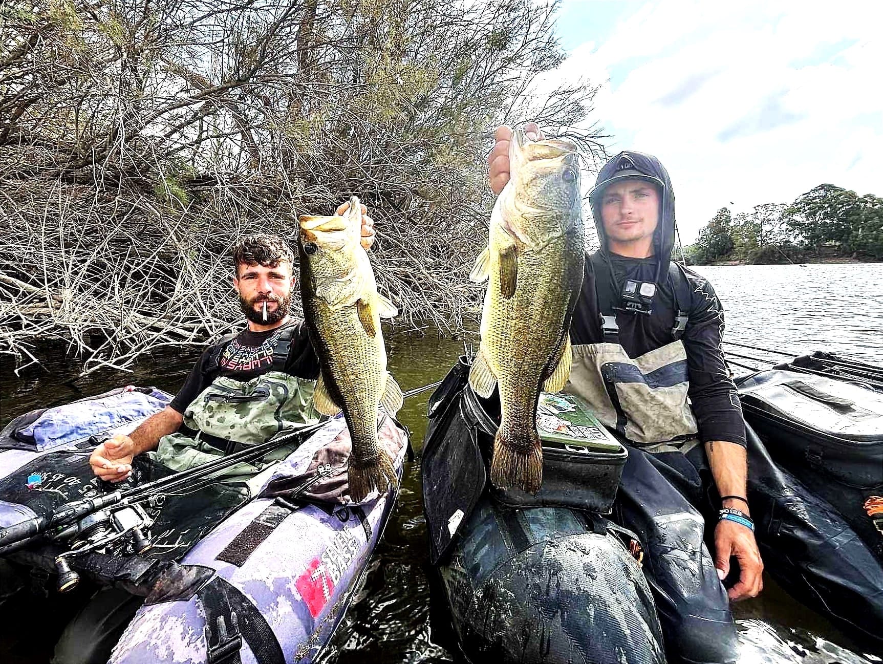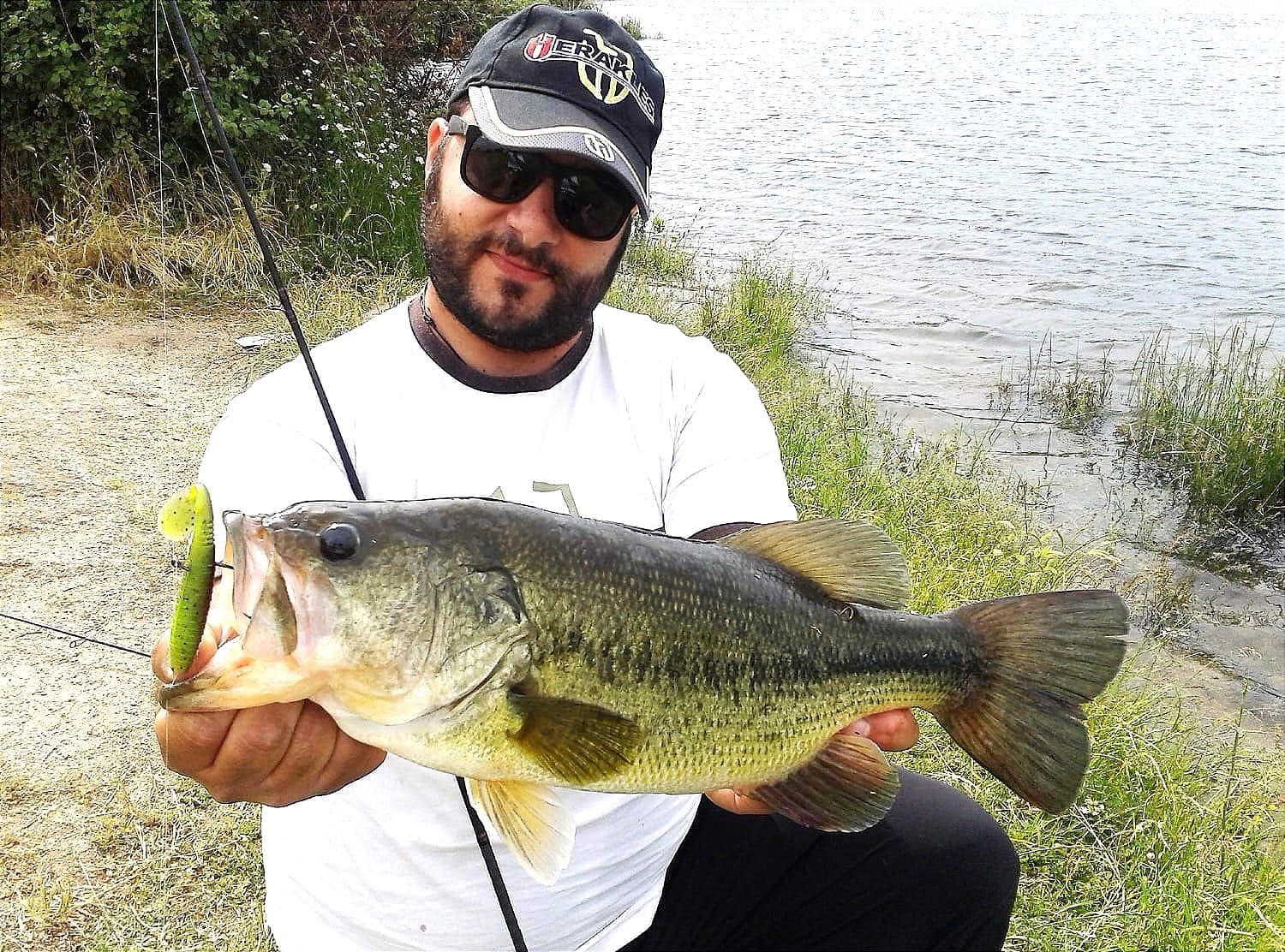 foto sopra: un imperturbabile Fabio Murgia posa sul suo belly con un bel bass ingannato dalle vibrazioni e dal contrasto cromatico fra skirt e trailer della sua chatterbait.