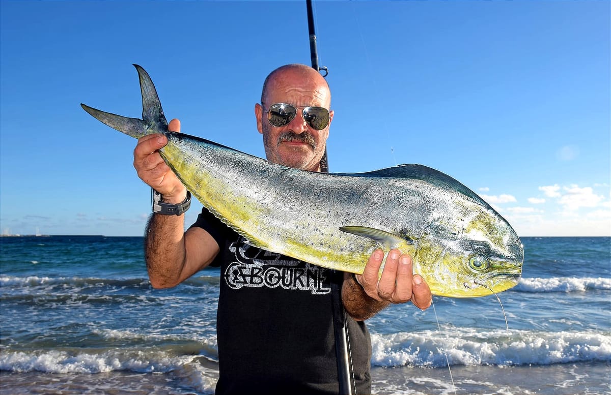 foto sopra: Andrea Galiani solleva una coloratissima lampuga, pescata in una mattina di novembre con un grosso muggine innescato su una paratura mono amo. Non una cattura casuale, visto che Andrea sperava nell’attacco del dorado e aveva preparato un grosso bracciolo dello 0,50.