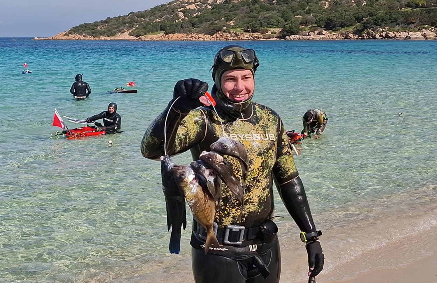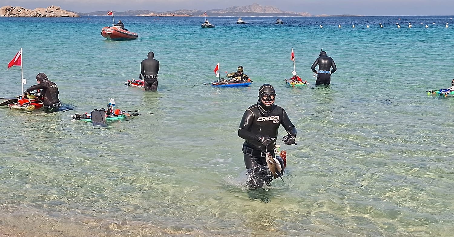 La giornata, fortunatamente, regala almeno un clima piacevole. Il sole accompagna la competizione e le quattro ore di gara scorrono rapide tra aspetti, perlustrazioni nelle spaccature del granito e lunghe planate alla ricerca di qualche sagoma sospetta. Con il rientro degli atleti diventa evidente che per conquistare la vittoria servirà molto meno rispetto alla scorsa stagione, quando furono necessarie ben dieci prede per imporsi. Questa volta la lotta per il successo sembra ristretta a un gruppo di quattro o cinque concorrenti. Come da tradizione, il gruppo si sposta poi a Cannigione per il pranzo conviviale, uno dei momenti più apprezzati della giornata.