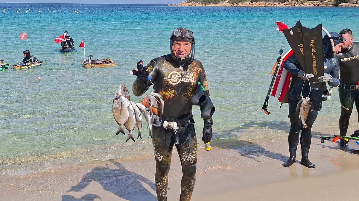 La giornata, fortunatamente, regala almeno un clima piacevole. Il sole accompagna la competizione e le quattro ore di gara scorrono rapide tra aspetti, perlustrazioni nelle spaccature del granito e lunghe planate alla ricerca di qualche sagoma sospetta. Con il rientro degli atleti diventa evidente che per conquistare la vittoria servirà molto meno rispetto alla scorsa stagione, quando furono necessarie ben dieci prede per imporsi. Questa volta la lotta per il successo sembra ristretta a un gruppo di quattro o cinque concorrenti. Come da tradizione, il gruppo si sposta poi a Cannigione per il pranzo conviviale, uno dei momenti più apprezzati della giornata.