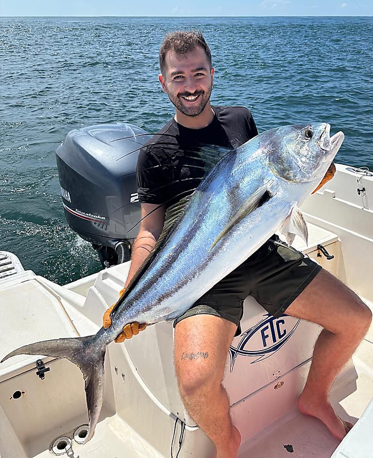 Tutto ha inizio alle prime luci dell’alba. Dopo un’energica colazione io e Palmiro (mio marito), nonchè capitano del nostro team “u gioitanu”, ci dirigiamo verso il porto dove troviamo ormeggiata la nostra Francis, una splendida walkaround 24 piedi, fedelissima compagna delle nostre battute di pesca. Diamo subito inizio ai preparativi con esche e attrezzature varie (canne, fili, mulinelli) senza far mancare gli scambi di parere sulla strategia da adottare. Una volta preparato il tutto e presa la decisione sullo svolgimento della battuta di pesca, molliamo gli ormeggi e ci dirigiamo verso la batimetrica utile a insidiare aguglie imperiali e altre specie come lampughe e tonni alletterati, che spesso troviamo su queste distanze. Durante la navigazione riusciamo a godere dello splendido panorama che solo Scilla e Cariddi posssono regalare. Raggiunto il punto iniziamo a filare le nostre esche in acqua (kona, octopus, piume ecc..), ed ecco che dopo pochissimo tempo si dà il via alle danze con i prime strike. Non sono pochi i rilasci perché prede sono sotto la media. In tutti i casi, dopo qualche oretta di traina, finalmente è strike sul divergente di dritta. Si evince da subito che la preda non sarà da rilascio. Energicamente porta via parecchio filo sulla sua prima fuga. L’emozione e l’adrenalina hanno quasi il sopravvento, ma grazie alla calma e l’esperienza del mio capitano che dà immediatamente indicazioni su come gestire la cosa, riesco a gestire facilmente il recupero e in men che non si dica lo strike si trasforma in pesce a bordo. La giornata si conclude con altri rilasci, fondamentali per il rispetto delle regole e del mare, ma soprattutto per favorire la riproduzione delle specie. Ringrazio il mio capitano per avermi regalato l’ennesima splendida giornata di pesca che non vedo l’ora possa replicarsi.
