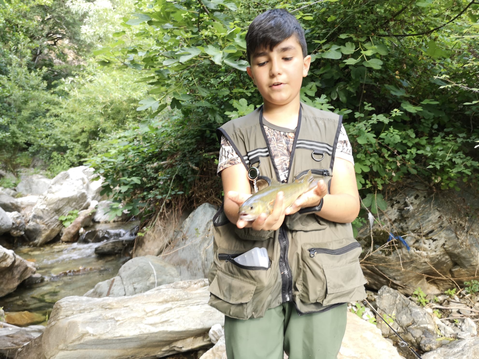 Per seguire la mia passione per le acque interne, mi sono recato a Sadali, nella regione storico geografica della Barbagia di Seulo, un territorio da sempre ricchissimo di acque e di fenomeni carsici. Qui le acque finiscono soprattutto nel sottosuolo calcareo alimentando un intricato dedalo di grotte e di risorgive. Numerosi sono i torrenti sadalesi che dall’altipiano, confluiscono ad alimentare il Rio Sadali che a sua volta scorre profondo e incanalato nel fondo valle fino a fondersi dopo chilometri di natura selvaggia, nelle acque del grande Lago Medio Flumendosa. È qui, in questi territori, che cresce e si diverte a pesca il piccolo Gioele, secondogenito di Christian Meloni, il quale, pur giovanissimo, in fatto di trote non è secondo a nessuno. Credetemi, se non lo avessi visto con i miei occhi, mai avrei immagianto tanta bravura e tanta sana passione concentrati in soli 10 anni.