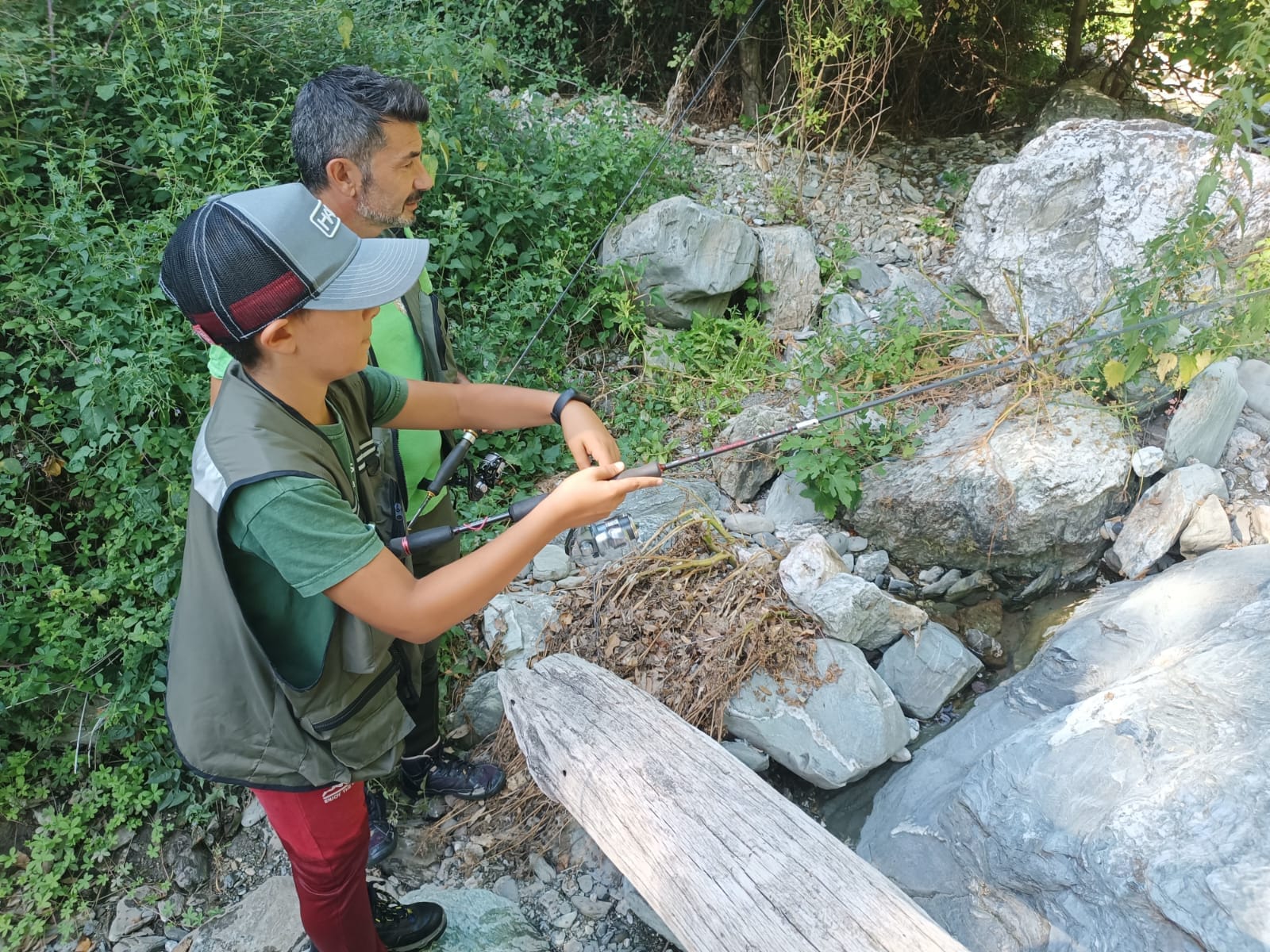 Se oggi Gioele, classe 2014, è un ragazzino così fortunato, lo deve alla saggezza e al rispetto che hanno avuto suo padre, suo nonno e il suo bisnonno prima di lui. Mio padre, classe 1942 - racconta Cristian - era un grande esperto, ma prendeva al massimo 5 pesci al giorno, anche quando avrebbe potuto continuare a fare bottino. La sua era una scelta ragionata, perché sapeva che se ad ogni pescata avesse tolto troppo, il torrente avrebbe dato sempre di meno. Oggi grazie anche alle collaborazioni che Cristian ha attivato con numerosi esperti di università italiane, in ultimo l'ittiologo e pescatore Marco Casu dell’Università di Sassari, Gioele può continuare a crescere come pescatore e collezionare catture su catture. Non credo che molti altri bambini della sua stessa età abbiano mai macinato tanti chilometri in torrente come ha fatto Gioele. A pesca di trote è una macchina da guerra. Si muove come un ninja, attento e silenzioso, osserva, è sicuro di sé nel lancio. Passa dallo spinning al casting usando tutte le classiche esche artificiali da trota, dai cucchiaini rotanti fino alle più moderne e catturanti esche in gomma. E sono sicuro che non passerà molto tempo per vederlo impugnare una canna da mosca assieme a Cristian.