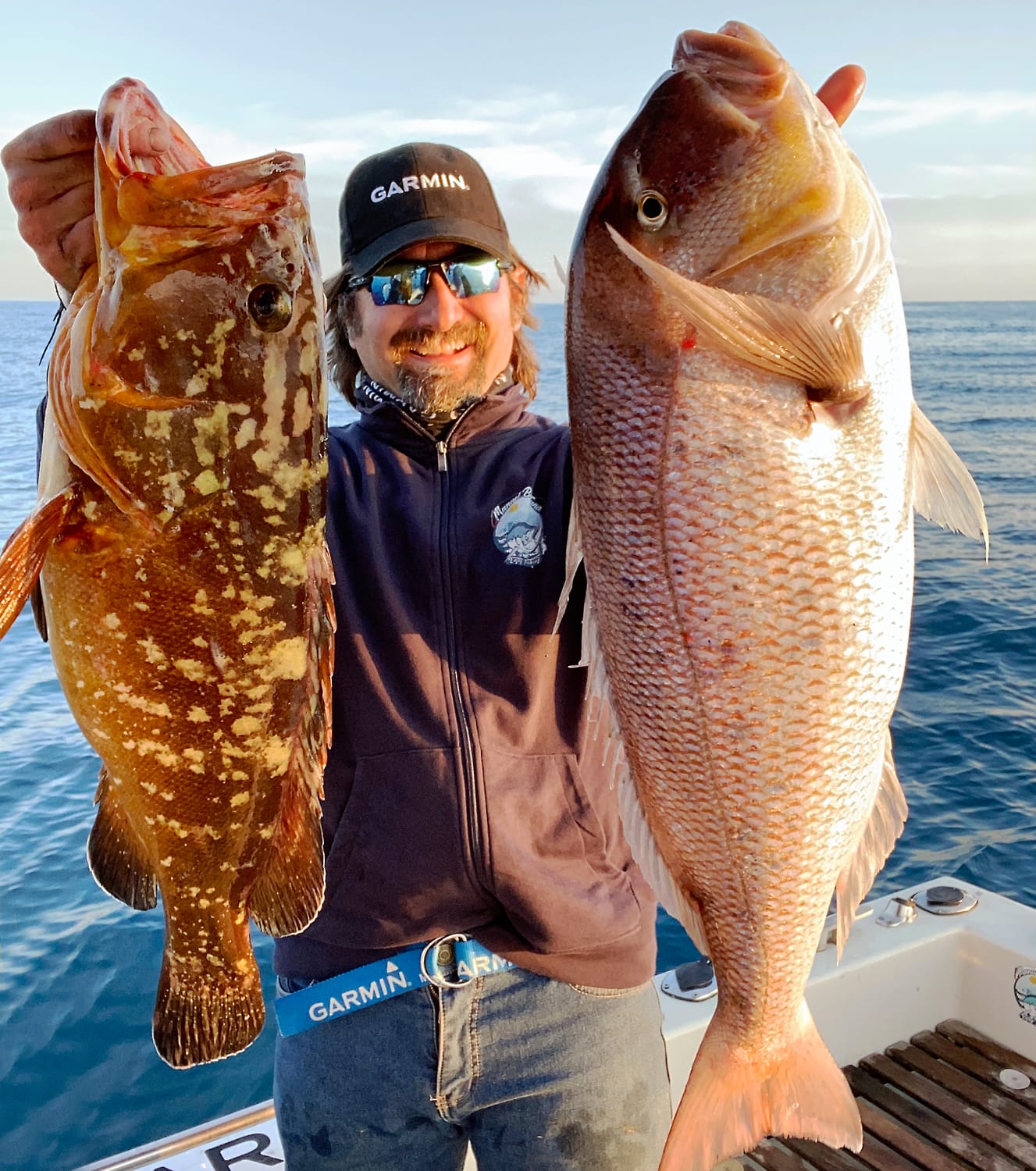 foto in alto: l’autore con un grosso dentice pescato con la classica traina col vivo.