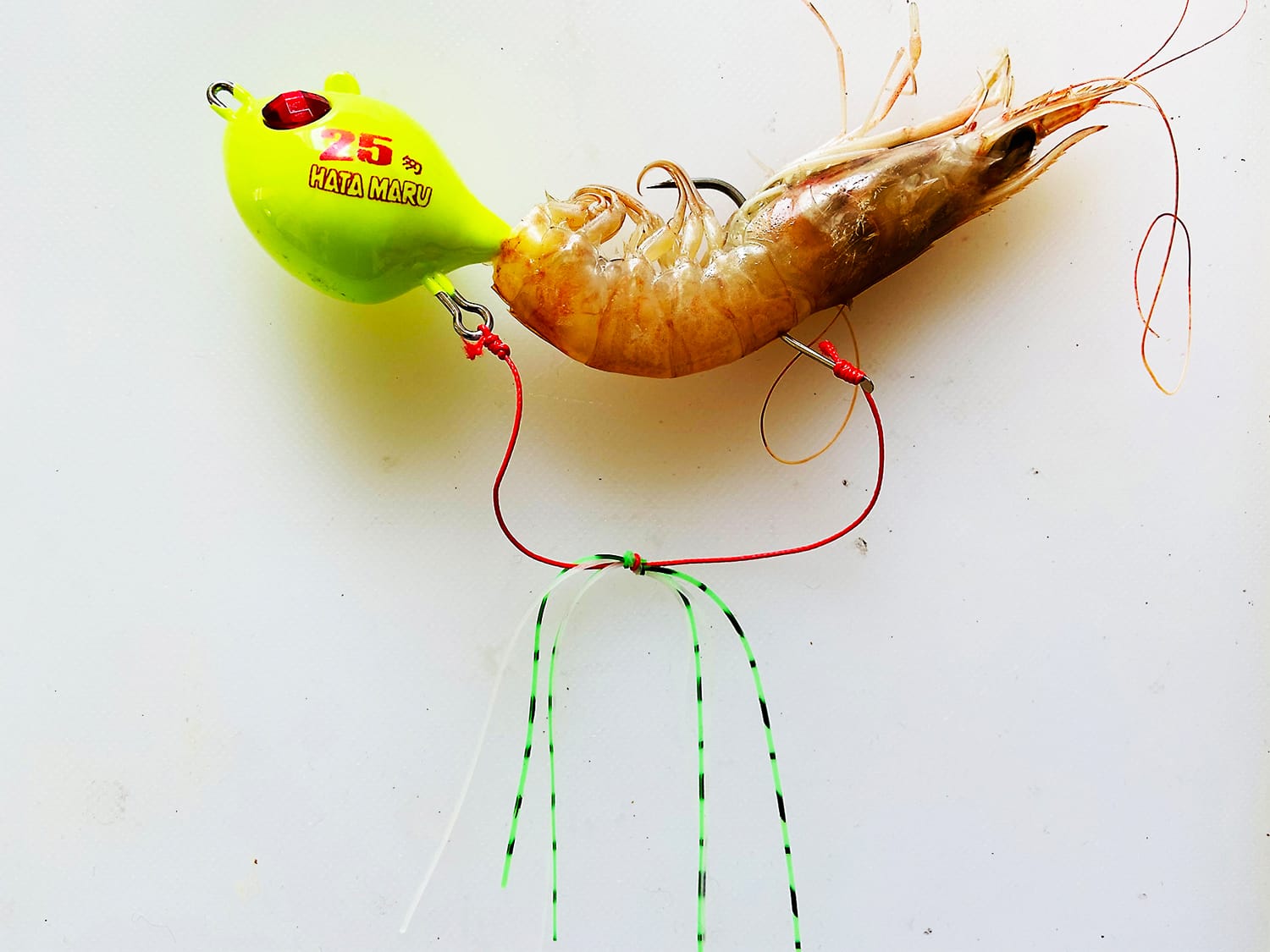 4 mustele prese con tecniche verticali sulla batimetrica dei 100 metri. Un classico kabura arricchito con un gambero rosa.