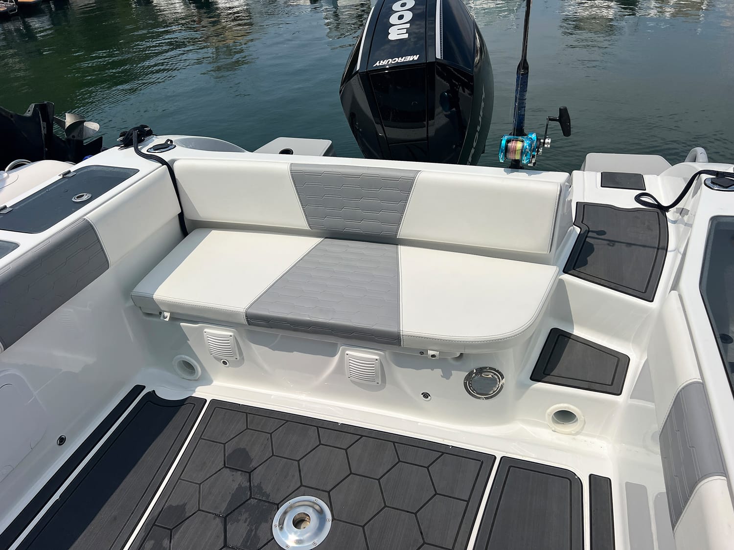 Una barca universale. Si adatta a tutte le esigenze, o quasi. Questo modello, strizza l’occhio alla pesca sportiva e non ha perso la vocazione per il puro diporto. Anche la famiglia può godere del mare e della velocità, grazie al potente V8 Mercury Verado da 300 hp.