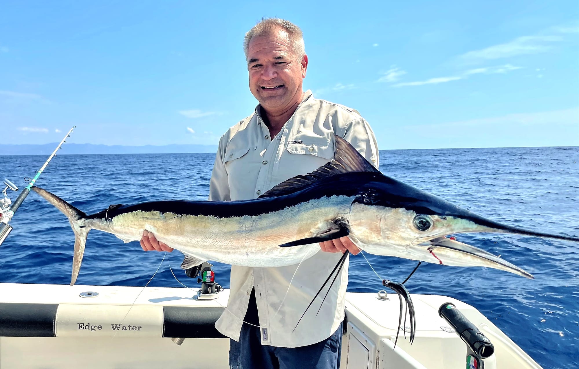 Anche con questi pesci potremo optare per soluzioni diverse come la pesca con gli artificiali come quella con il vivo. Alla portata di tutti gli skipper, sempre di un certo livello comunque, è la pesca con gli artificiali, se vogliamo anche la più facile poiché basta battere le zone buone di pesca al momento giusto (vento, maree, presenza di pesce foraggio … tutte cose comunque che i vari skipper locali devono conoscere), avendo in acqua le esche appropriate come kona di medie dimensioni (20/30 centimetri di lunghezza e dalle teste non troppo grosse) ed aspettare che un rostrato le venga a visitare. Ottimi risultati li garantisce anche la traina veloce (7-8 nodi) effettuata con pesci morti come i ballyhoo, meglio ancora se montati in combinazione con octopus vinilici o piccoli kona a testa morbida, oppure le strisce di pancia (belly strip) di bonito , se non abbiamo a disposizione bonito anche altri pesci possono fornirci le giuste esche, anche esse montate in combinazione con kona o octopus. Tutte queste esche e relativi montaggi funzionano un po’ ovunque. In alcune aree, specialmente quelle dell’America centrale è molto praticata anche la pesca ai vela e agli striped marlin con le esche vive. In pratica si trainano lentamente sugarelli, sgombri, sardine o altri piccoli carangidi, oppure si pescano a vista, lanciando le esche una volta avvistato il pesce. Queste esche sono montate quasi sempre con ami circle per facilitare la ferrata del pesce da parte del pescatore.