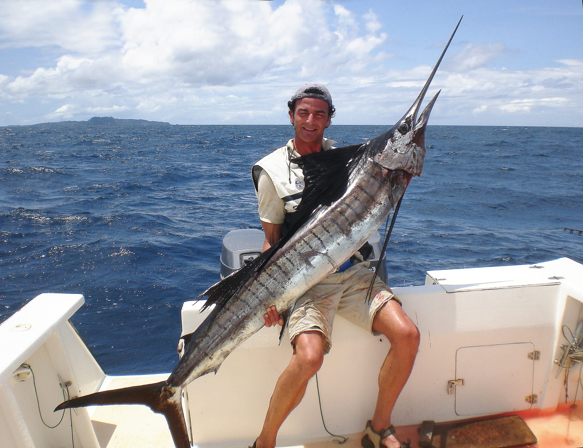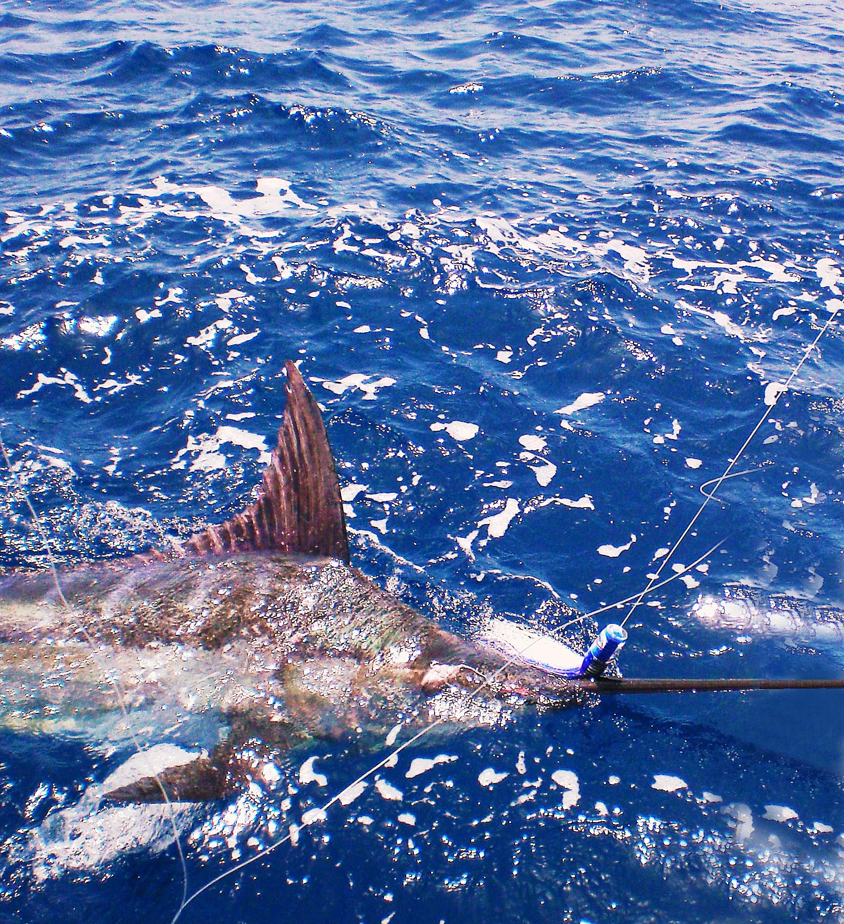 Taglie diverse e pesca diversa - Il blu ed il nero sono decisamente i marlin più grandi e la loro pesca va presa sul serio, nel senso che andando alla ricerca di grossi pesci è preferibile affrontarli con attrezzature adeguate alla loro taglia ed affidarci ad equipaggi collaudati. La differenza tra la pesca occasionale di un marlin e quella mirata alla cattura di tali rostrati (parliamo di blu e neri) è sostanziale: pescando a traina in acque tropicali o sub tropicali ed impiegando attrezzature divertenti intorno alle trenta libbre o comunque adatte alla cattura di specie di dimensioni medie come ad esempio pesci vela, wahoo, tonni yellowfin, lampughe può capitare di allamare un marlin di grosse dimensioni e nella maggioranza dei casi il pesce si perde per svariati motivi come l’esplosione della lenza o per la fine del filo del mulinello … una volta su dieci, forse, se siamo fortunati, dopo mille peripezie e se abbiamo un buon equipaggio e una barca veloce riusciamo a portare il pesce sottobordo ed il nostro sogno si realizza, ma, al di là dell’impresa epica di cui a ben ragione possiamo andare fieri, dobbiamo anche renderci conto che non è proprio quella la tecnica giusta ed il modo giusto per affrontare i grossi marlin (il discorso sui record è una cosa diversa e ci sarebbero troppe cose da dire pro e contro tale argomento).