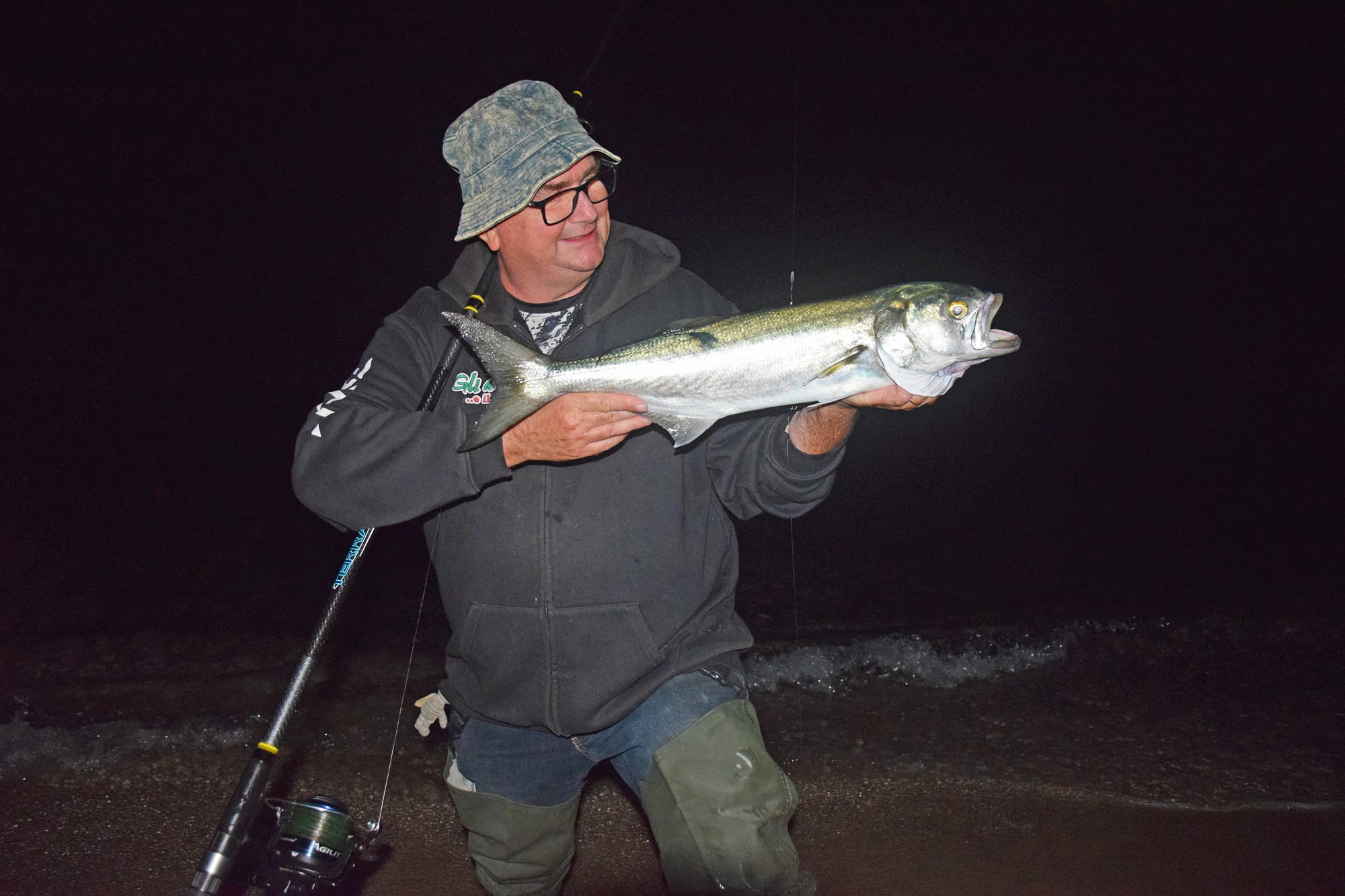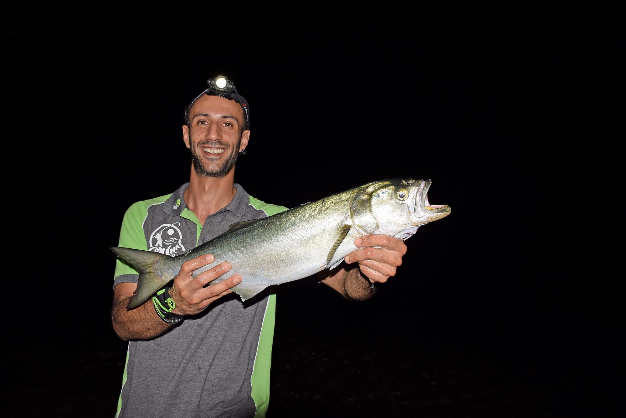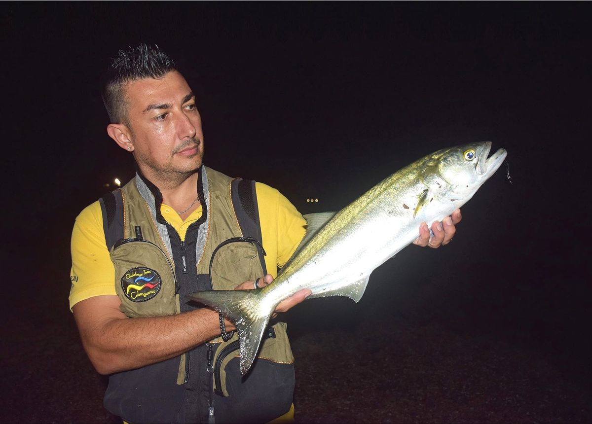 Foto sopra: Fabrizio Frongia con un serra di 1,7 chili, pescato a metà settembre dalla spiaggia di Santa Margherita di Pula. La cattura è arrivata a notte fonda, in coincidenza col picco di alta marea