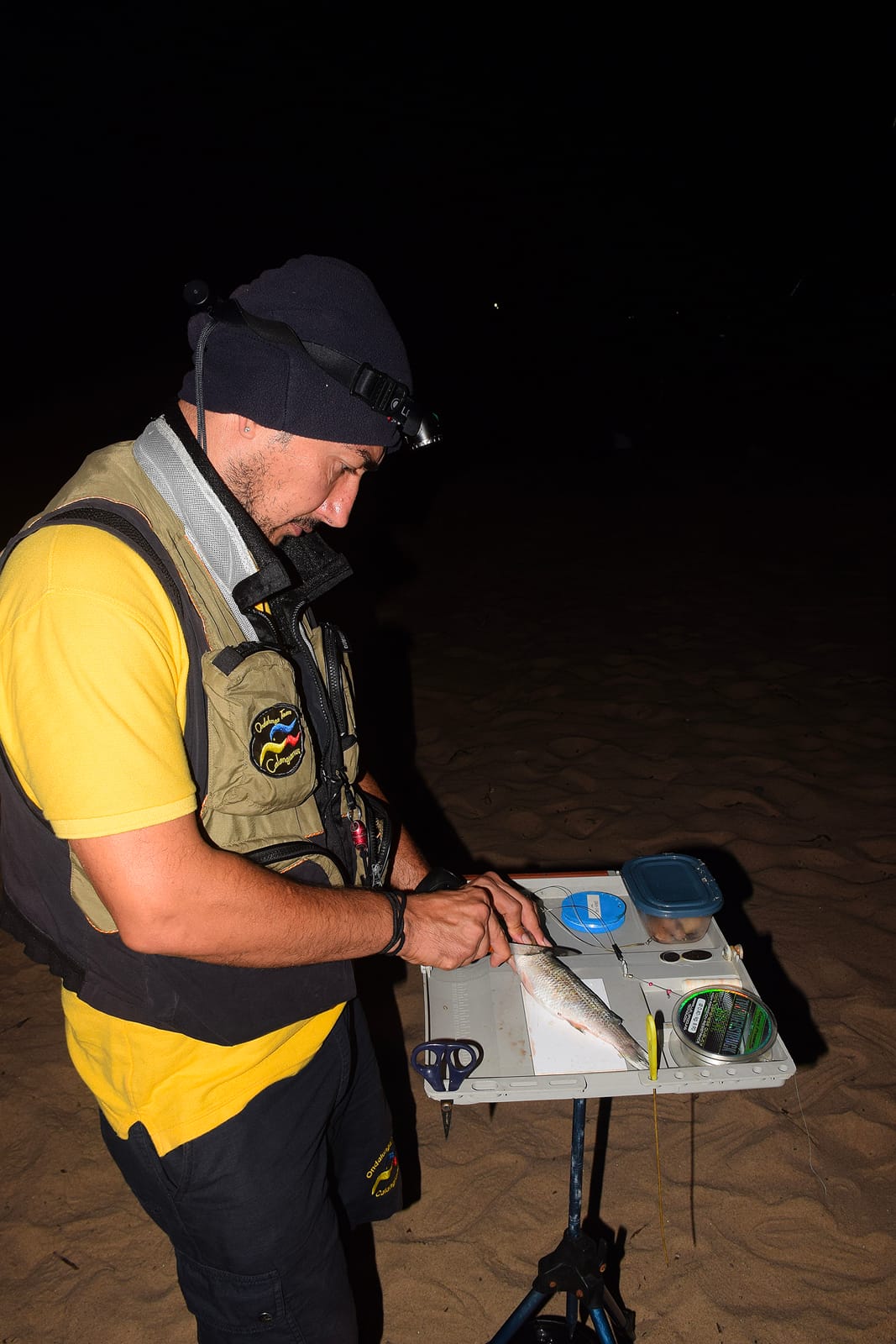 Per avere i risultati migliori è però necessario adattare anche l’attrezzatura al nuovo menù. In particolare, per aumentare la gittata del lancio si utilizzano in bobina fili davvero sottili. Una sezione dello 0,23 o anche meno è consigliabile, anche quando la fortuna ci aiuta e abbiamo il vento alle spalle. E pure la canna deve essere più “sensibile” rispetto al passato. Mi riferisco in particolare alla prontezza con la quale il cimino ci deve avvertire delle eventuali mangiate. Non sempre infatti il serra “piega la canna”, come era solito avvenire non più di 10 anni or sono. La capacità di segnalare tempestivamente il primo sussulto è indispensabile quando gli attacchi arrivano a ondate, improvvisi e fulminei su più canne. Intendiamoci, esistono ancora i serra di una volta, scanzonati, cazzoni, rozzi e prepotenti. Quelli che si, la canna la piegano eccome e poi però provate voi a portarli a riva con uno 0,20 in bobina. Che emozione!