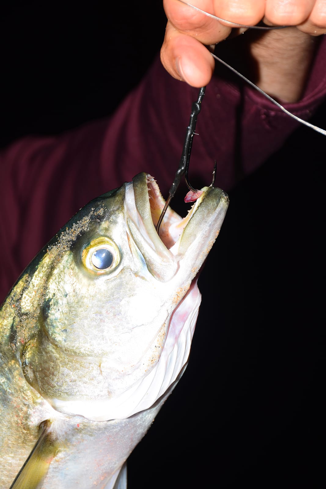 La tecnica è cambiata, adattandosi alle nuove situazioni. In particolare, ormai bisogna cercare i serra distanti da riva. Tutto deve quindi contribuire ad arrivare lontano. L’esca adesso è gourmet, piccola (non più di 10 centimetri e anche meno), “bellina” e cioè curata anche nella forma che deve essere il più possibile a goccia, aerodinamica. Ecco la ricetta. Ingredienti per… un serra: un trancio di muggine, possibilmente sfilettato sul momento; meglio se il muggine è fresco, grasso e di dimensioni medie; una piccola barretta di materiale galleggiante che non deve però essere visibile dall’esterno; un amo a gambo lungo del 1/0 o appena più piccolo, fissato a 20 centimetri di cavetto d’acciaio. Preparazione: sfilettare il muggine, avendo cura di eliminare la lisca e le pinne (i serra gradiscono la ciccia). Inserire l’amo, precedentemente fissato al cavetto d’acciaio, all’interno del trancio, facendo attenzione che sia esposta la parte interna, carnosa; la pelle con le squame all’interno. Aggiungere una barretta galleggiante. Chiudere, avvolgendo con cura il trancio attorno al galleggiante e fissare con del filo elastico q.b. Servire lontano da riva, diciamo almeno a 60 metri.