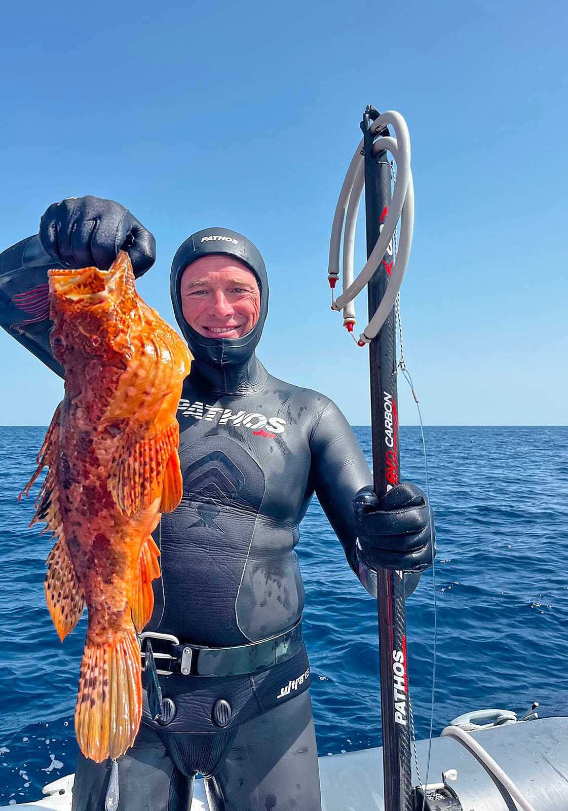 Ho conosciuto Stefano ai Campionati del mondo di pesca in apnea a Arbatax, nel 2021, e l’ho fotografato al rientro della seconda manche, in compagnia di un carniere da paura e quel fenomeno di Giacomo Mola a cui il Claut faceva da barcaiolo e che alla fine ha conquistato il titolo iridato. Ho rincontrato Stefano a Portoscuso, nella veste di garista, agli ultimi assoluti, e non a caso era primo nella giornata iniziale, con un carniere da paura. Stefano è considerato uno dei Grandi della specialità, anche se sul podio sardo ha dovuto accontentarsi della piazza d’onore alla destra di Fabio Dessì, per l‘occasione incontenibile.