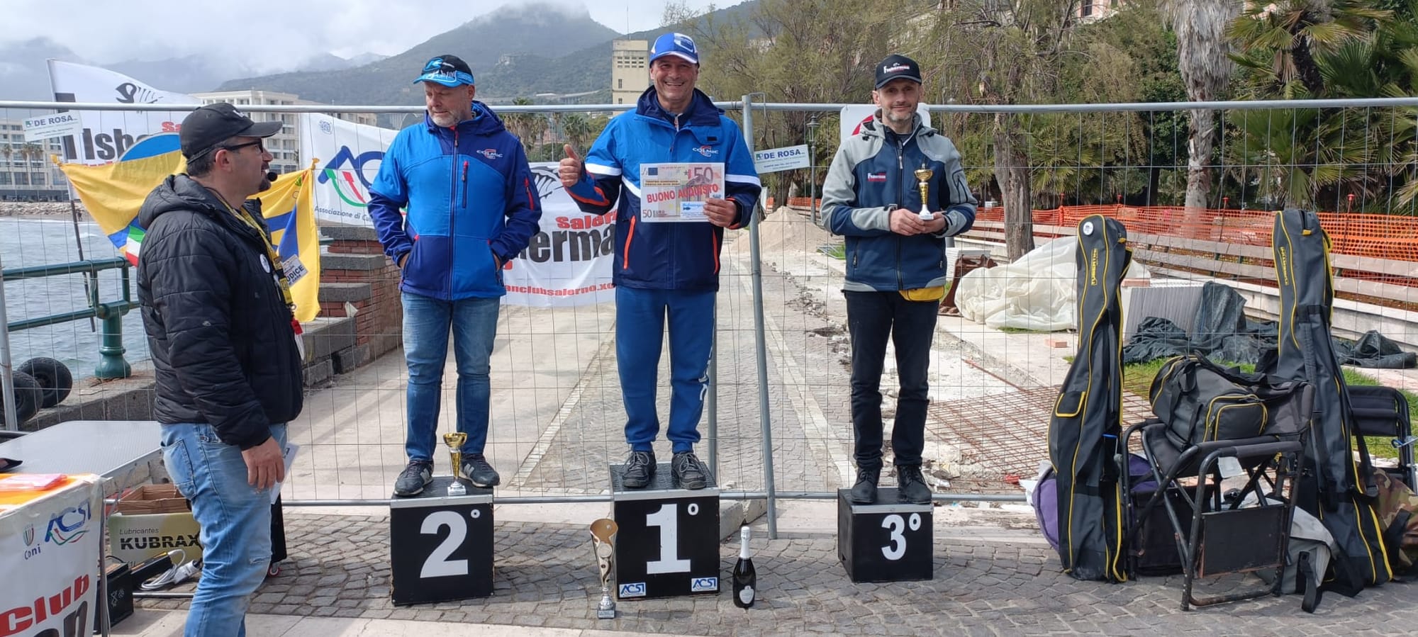 Una domenica di marzo, con molte nuvole e mare mosso che non hanno fermato il desiderio di divertimento di tanti appassionati campani di pesca da scogliera e nemmeno il comitato organizzatore presieduto dal navigato ed esperto Antonio Venosi, presidente del Fisherman Club Salerno.