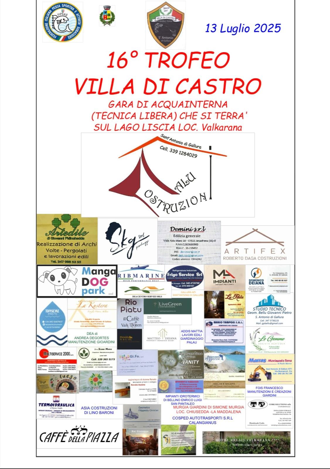 Si è svolto anche quest'anno, sul bellissimo lago del Liscia, il Trofeo Villa di Castro, una gara di pesca a tecnica libera a coppie, giunto alla XVI edizione.